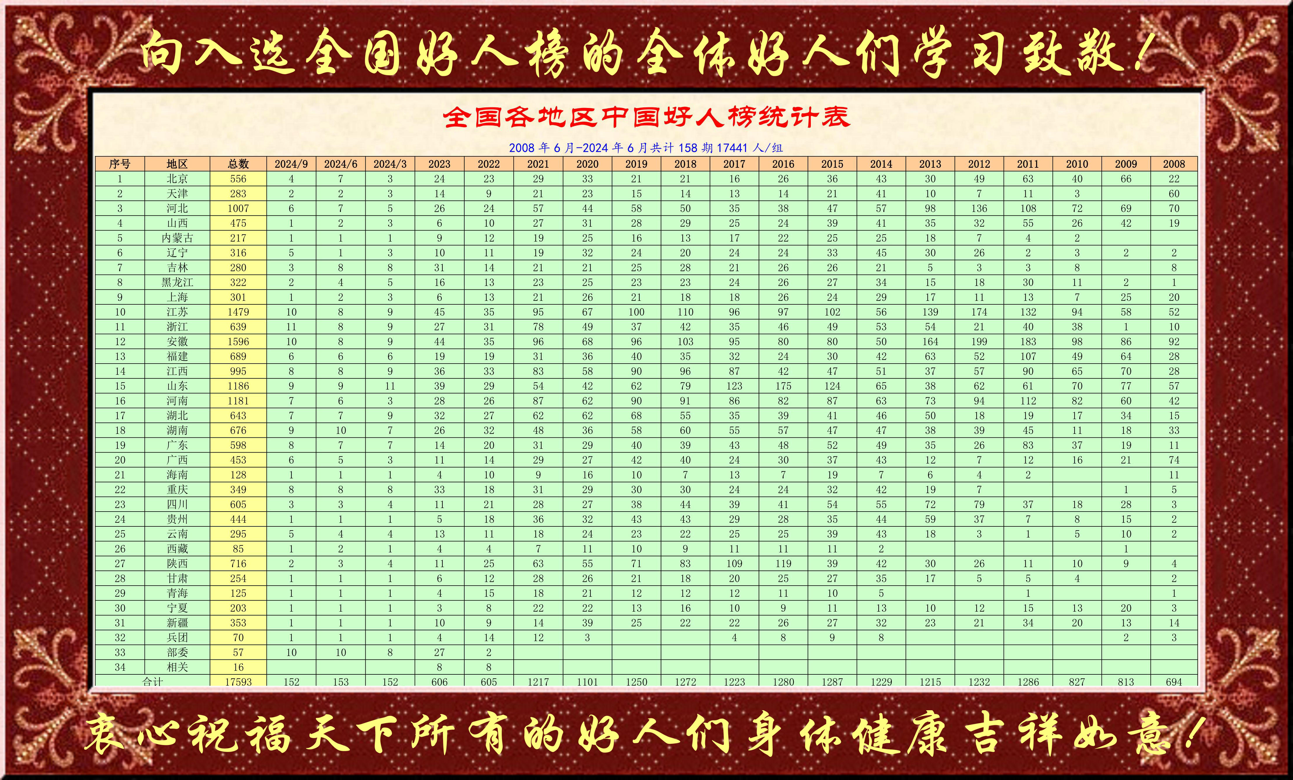 向全国入选的全部好人们学习致敬!衷心祝福天下所有的好人们身体健康吉祥如意!