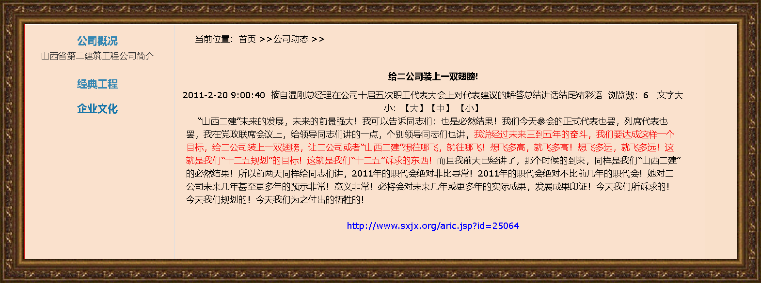 你看,原本计划成就日月峰,却偏偏出现事与愿违的七年之恙,这就是天意!一个网站经历了所有的事态变迁,这是不是天机?我不是专业做网站,更不是哪个单位或者哪个人交给我的工作职责!因为我知道它的重要性远比想象的空间要大的多,就像山西二建集团有限公司创始人所说:给二建装上翅膀!让山西二建飞得更高更远!