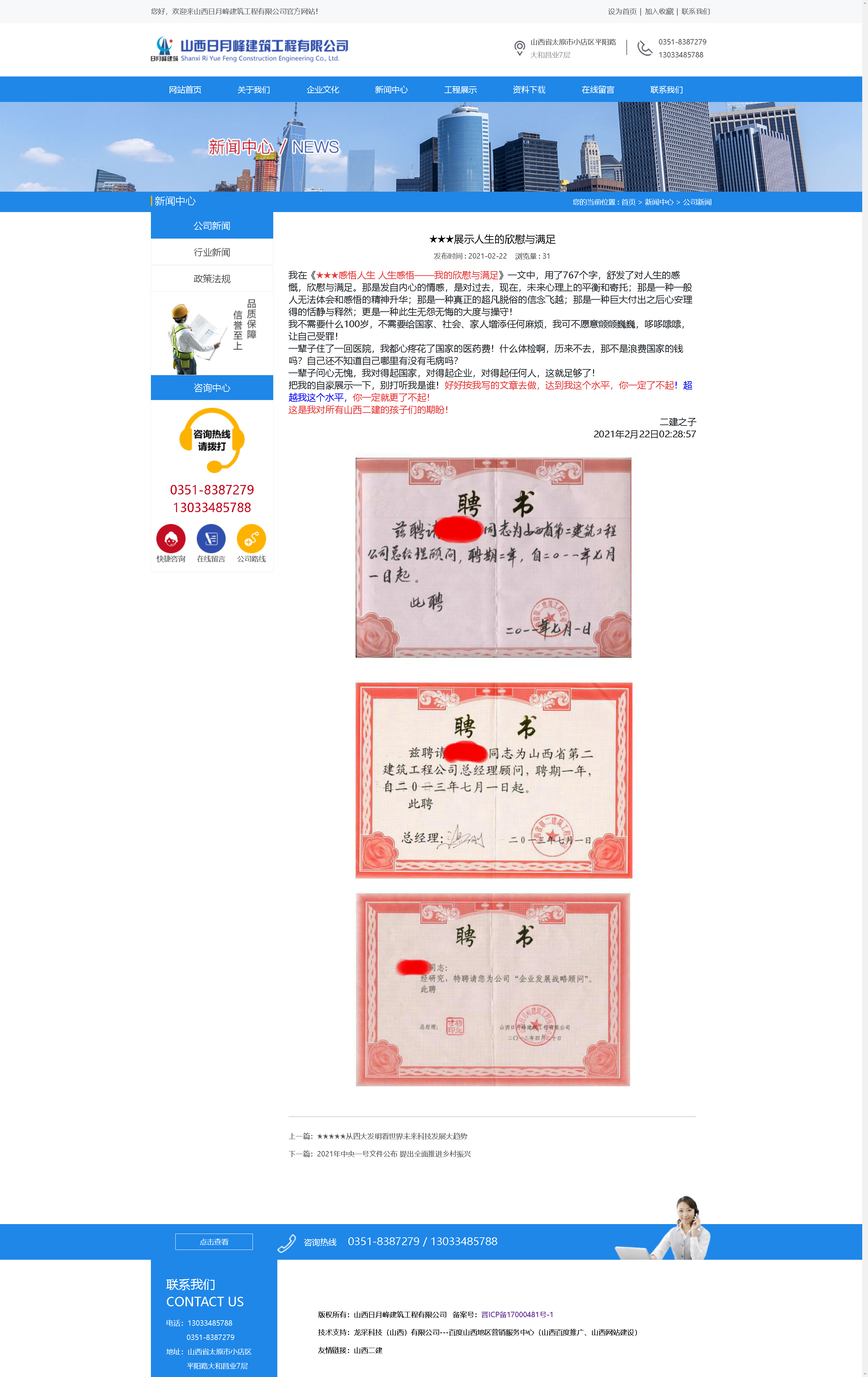 回顾以往,从18岁进入省建,四十年后的2011年担任山西省第二建筑工程公司总经理发展战略顾问,到2012年退休返聘,如今依然是在岗不在册的二建员工,这是我最看重和欣慰的第一件荣誉!从退休后第二年,又担任河南东方建设集团太原分公司和山西日月峰建筑工程有限公司总经理发展战略顾问,再到我亲自谋略的山西百乐博bIbo建设发展有限公司战略顾问,五十五年就是这样走过来的,普普通通,平平凡凡!