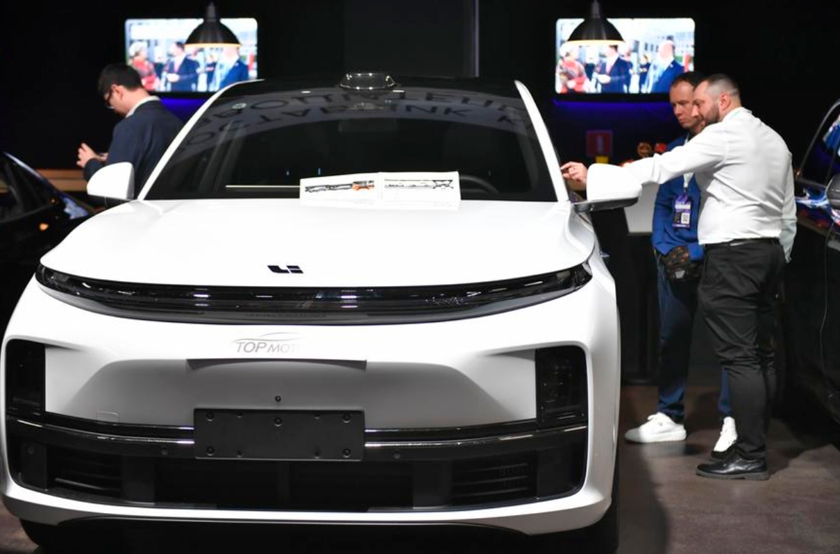 2023年10月10日,俄罗斯莫斯科,车展上展出的中国汽车品牌理想汽车。 新华社