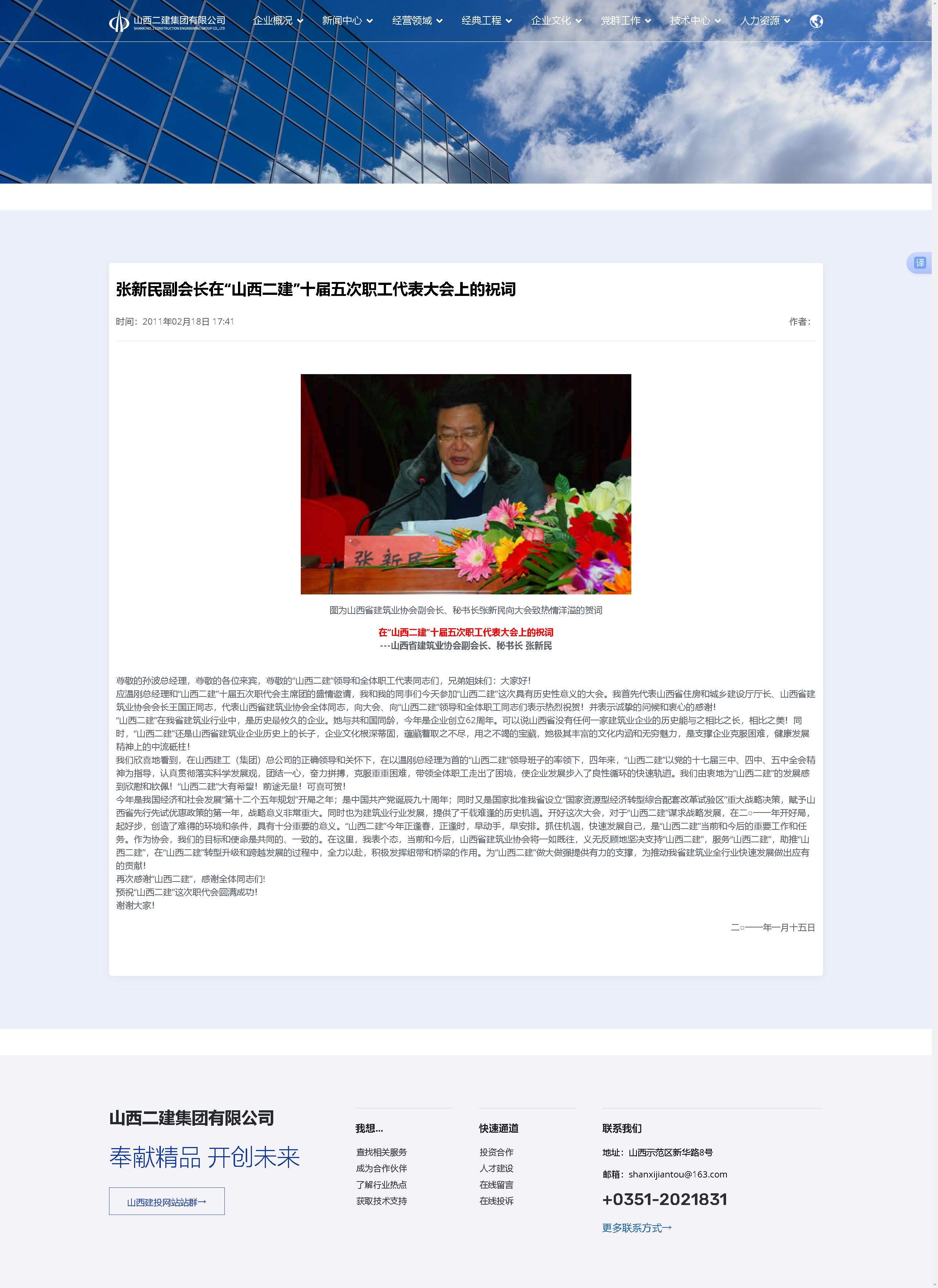 今天,再一次重温十五年前我撰写的这篇贺词,回顾当时那一次决定山西二建前途命运的大会,就像昨天发生的事情一样,感慨万千,思绪万千!
