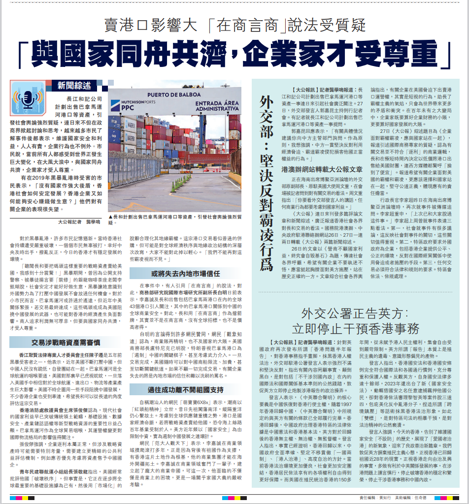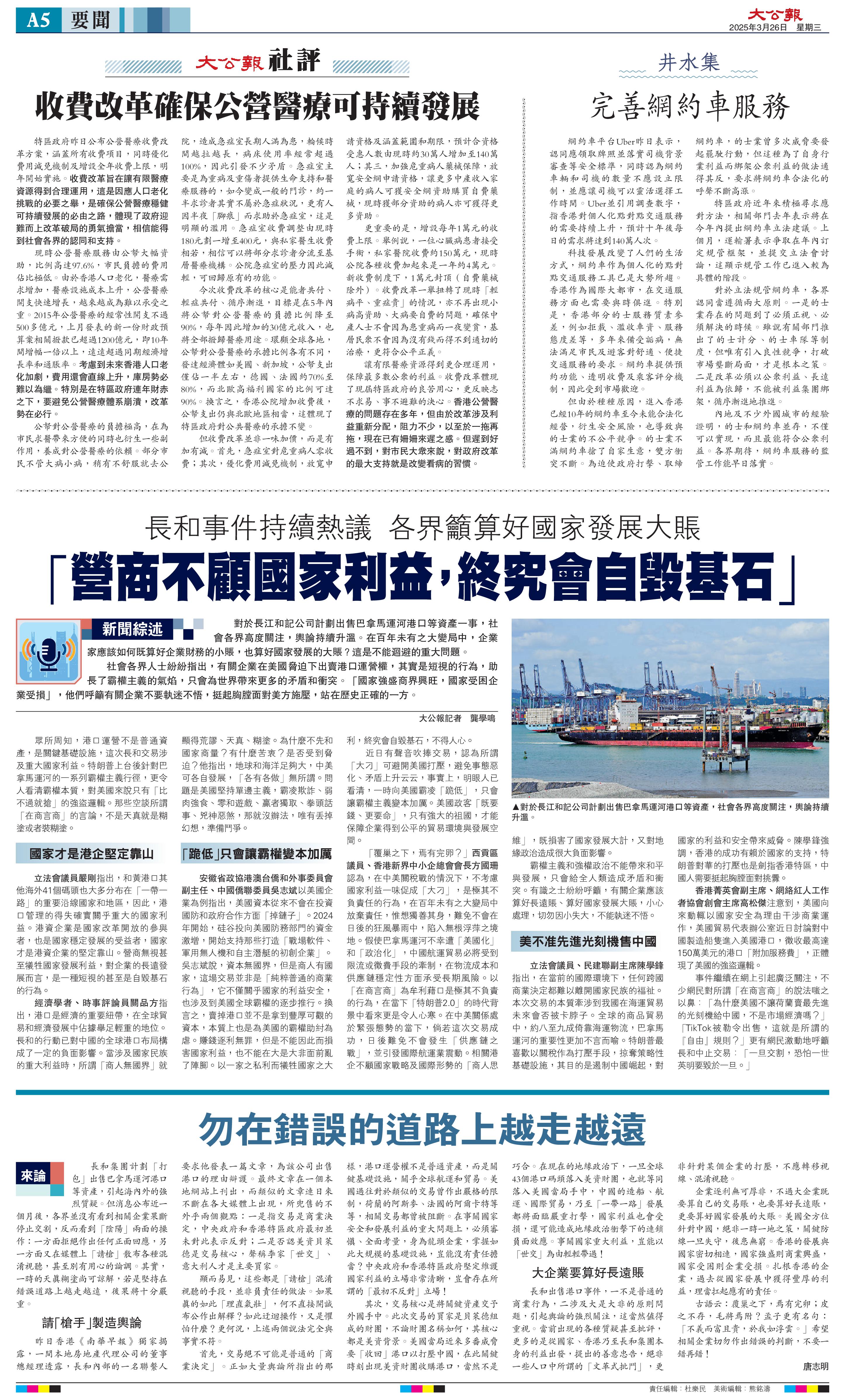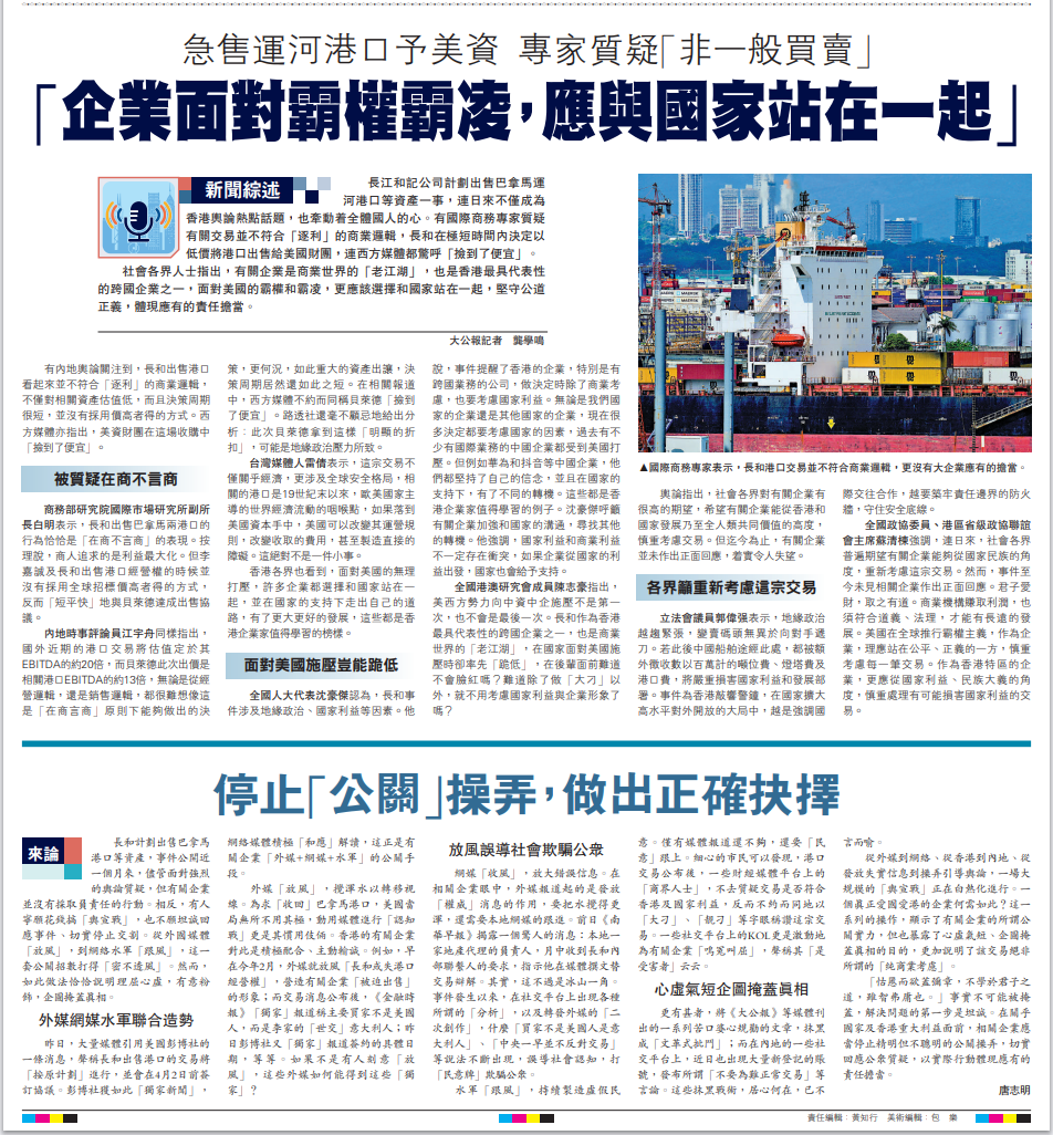 长和事件持续热议 各界吁算好国家发展大账 “营商不顾国家利益,终究会自毁基石”2025-03-26