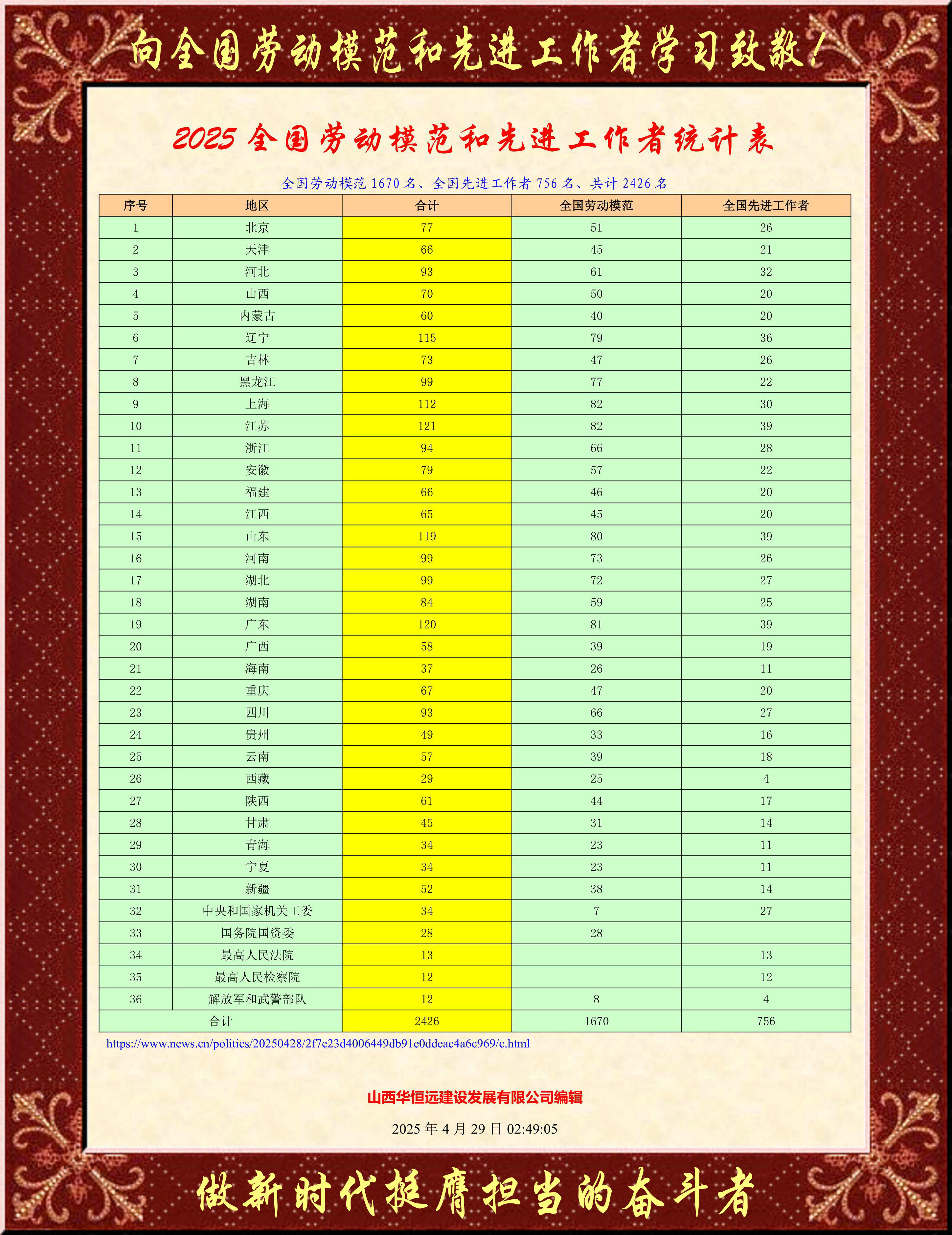 感悟新时代各行各业杰出代表人物——全国劳动模范先进工作者名录
