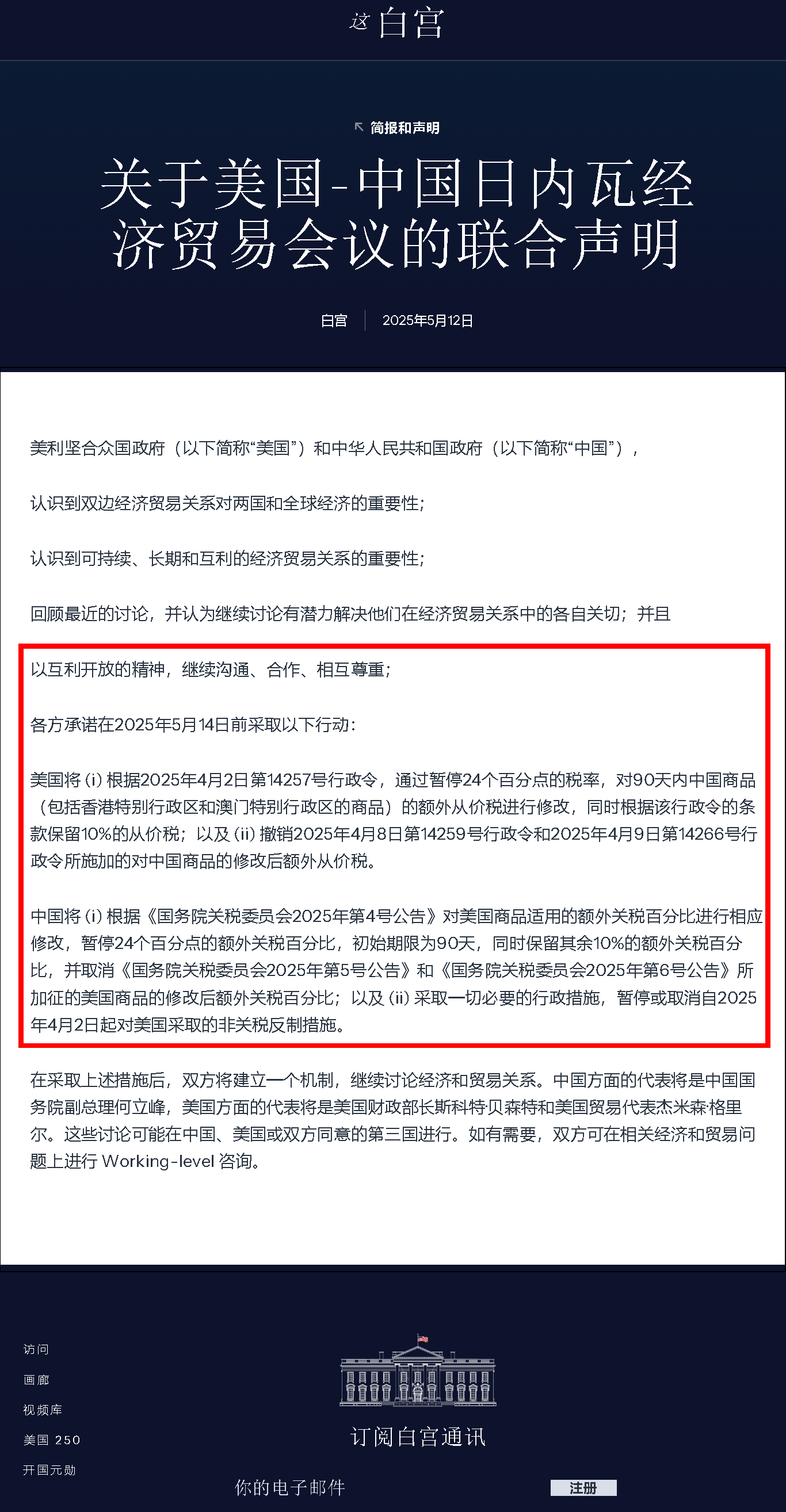 新华社日内瓦5月11日电(记者石松 焦倩)中美经贸高层会谈5月10日至11日在瑞士日内瓦举行。中美经贸中方牵头人、国务院副总理何立峰当地时间11日晚在出席中方代表团举行的新闻发布会时表示,此次中美经贸高层会谈坦诚、深入、具有建设性,达成重要共识,并取得实质性进展。双方一致同意建立中美经贸磋商机制。中美双方将尽快敲定相关细节,并将于5月12日发布会谈达成的联合声明。