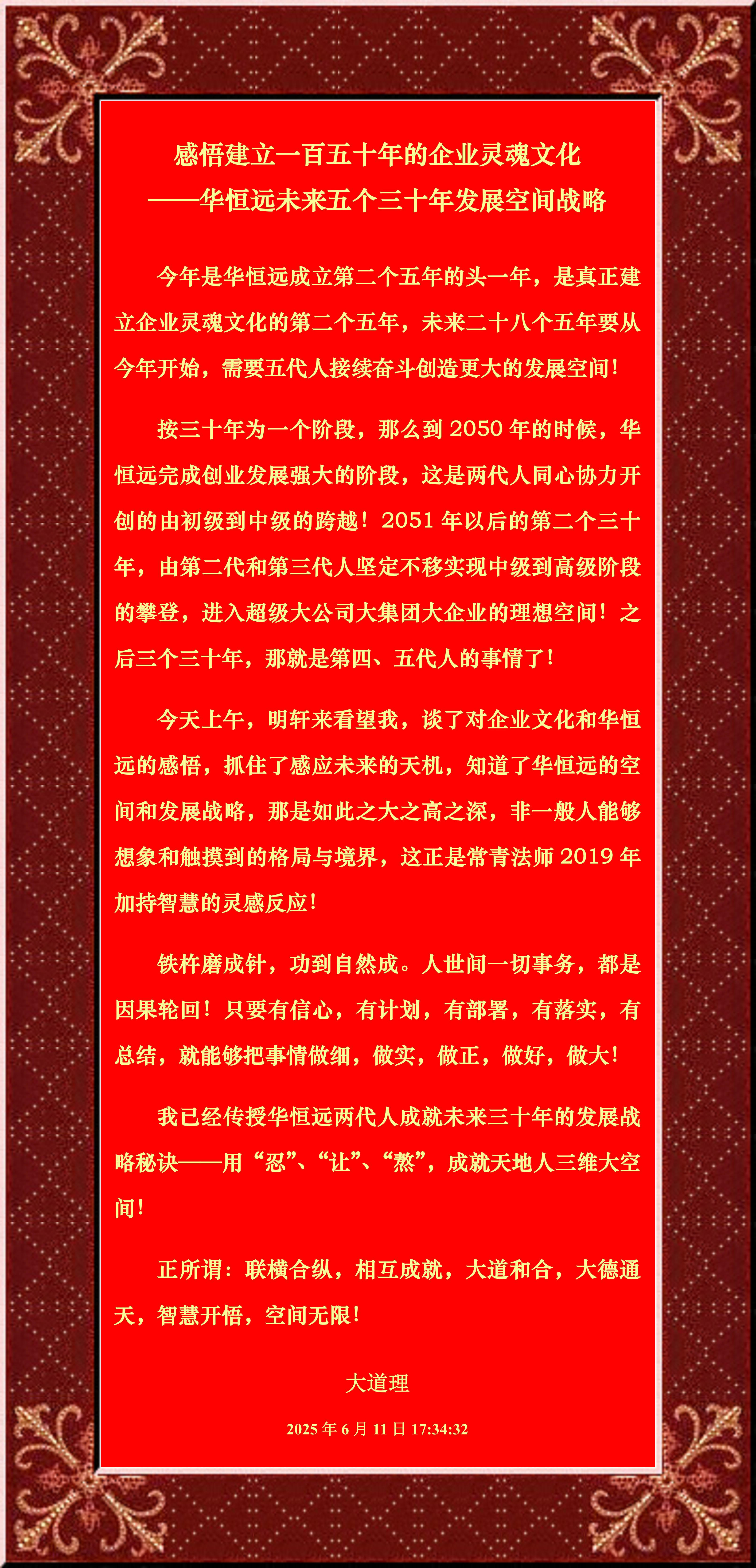 我已经传授百乐博bIbo两代人成就未来三十年的发展战略秘诀——用“忍”、“让”、“熬”,成就天地人三维大空间!