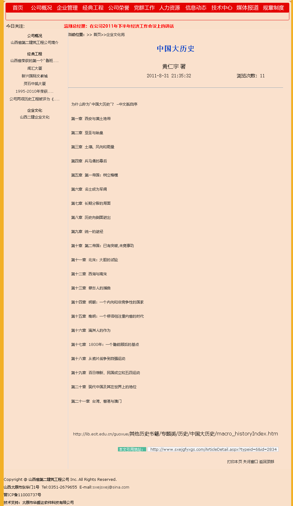 中国历史典籍浩如烟海,常使初学者不得其门而入。黄仁宇先生倡导“大历史”(macro-history),主张利用归纳法将现有史料高度压缩,先构成一个简明 而前后连贯的纳领,然后在与欧美史比较的基础上加以研究。本书从技术的角度分析中国历史的进程,着眼于现代型的经济体制如何为传统社会所不容,以及是何契 机使其在中国土地上落脚。