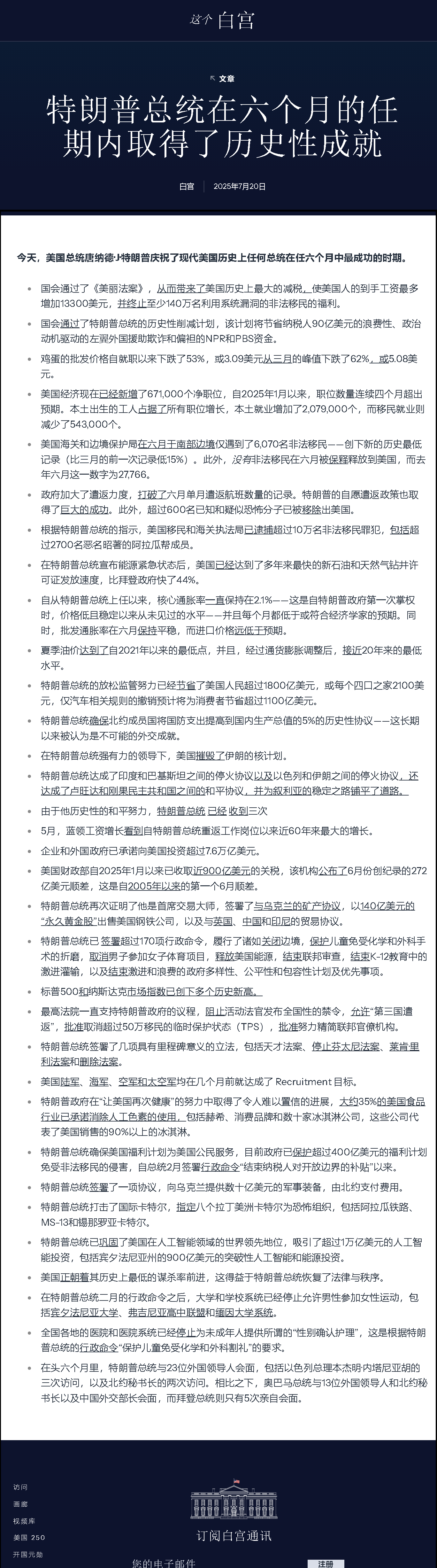 今天,记录特朗普二进宫六个月的成就,十年后看看历史如何评价和感悟?