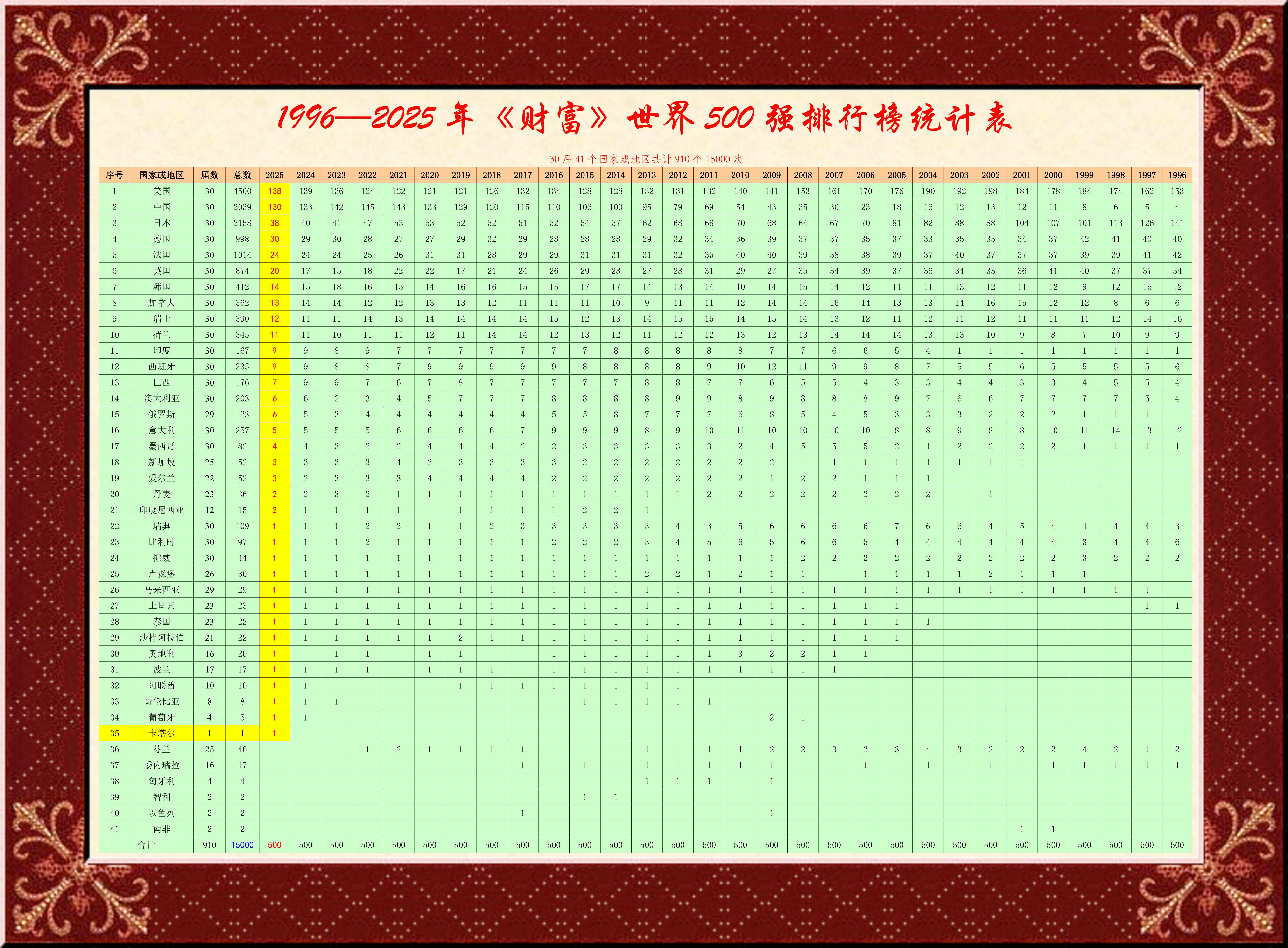 刚刚公布的《财富》世界500强排行榜,与其说是全球大公司的比拼,不如说是当今全世界200多国家和地区经济社会发展的座次排名!