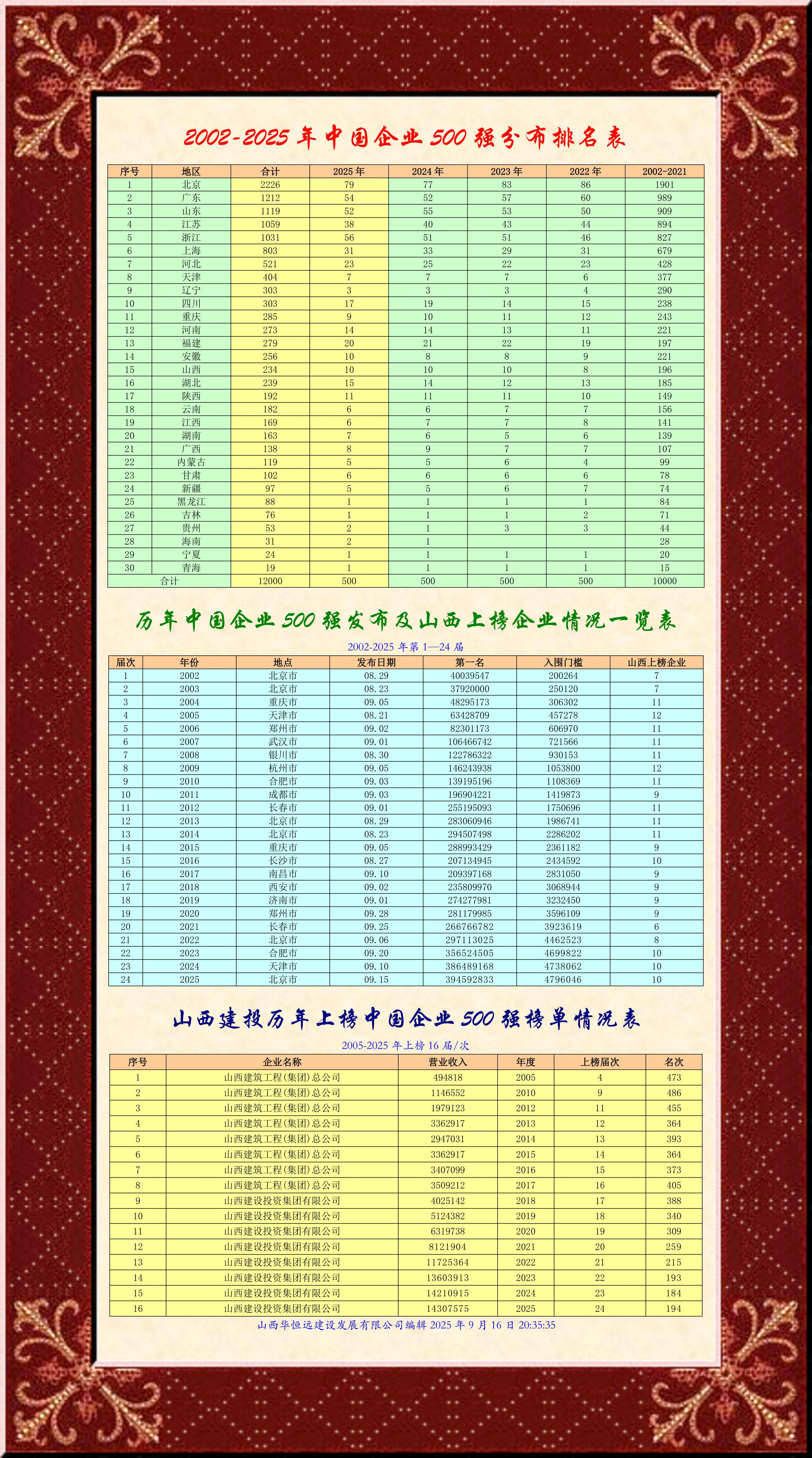 【行业动态】1.2万亿!10家晋企折桂2025中国企业500强