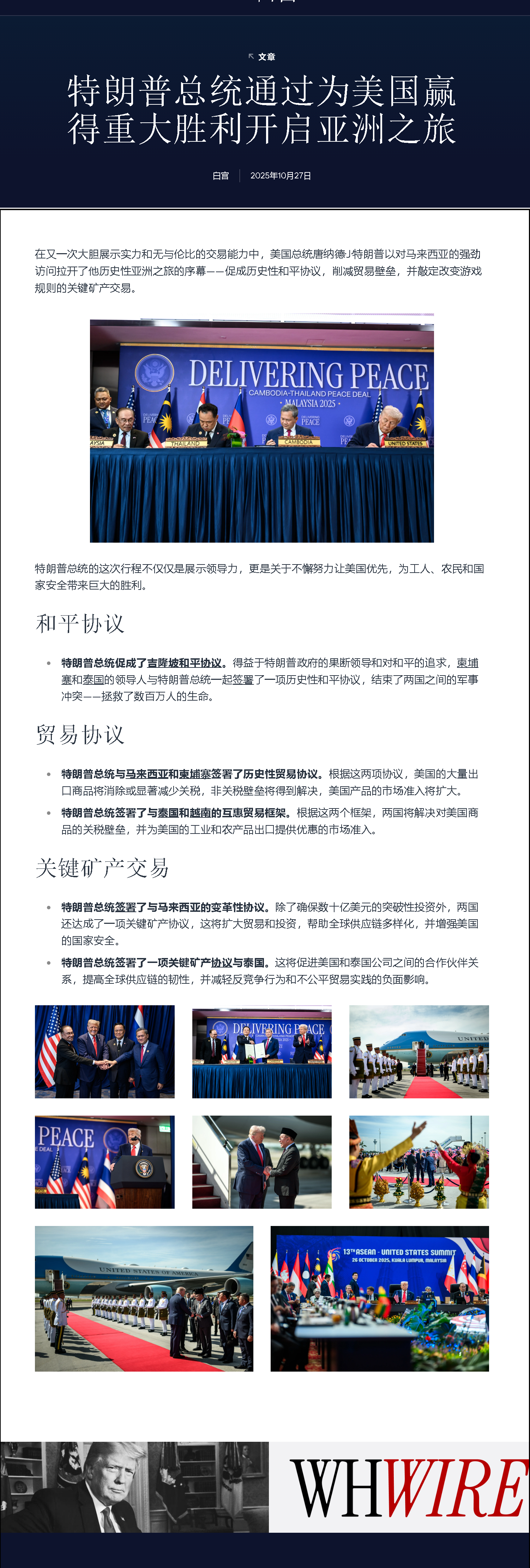 美泰联合声明:美国-泰国相互贸易协定框架 2025年10月26日