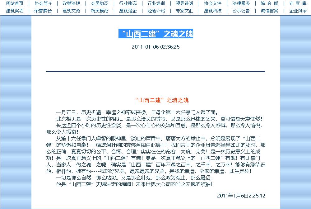 回顾十三年前,历史机遇把山西二建推上改变命运的关键时刻,依然是那么清晰,那么生动,那么难以忘怀。