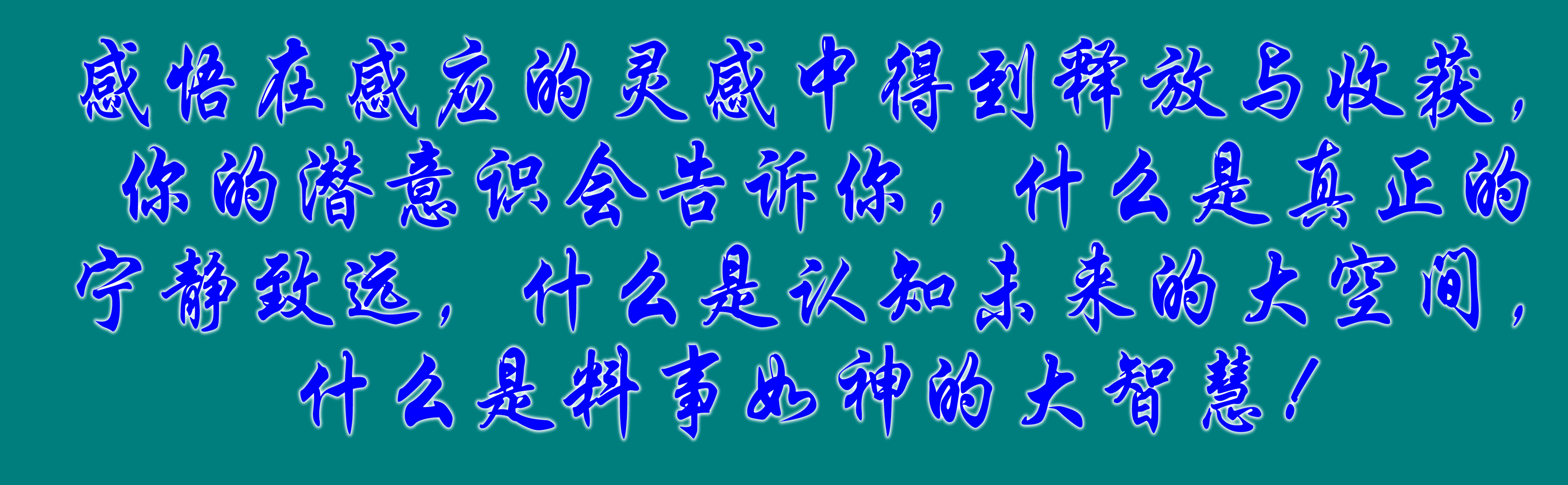 感悟在感应的灵感中得到释放与收获,你的潜意识会告诉你,什么是真正的宁静致远,什么是认知未来的大空间,什么是料事如神的大智慧!