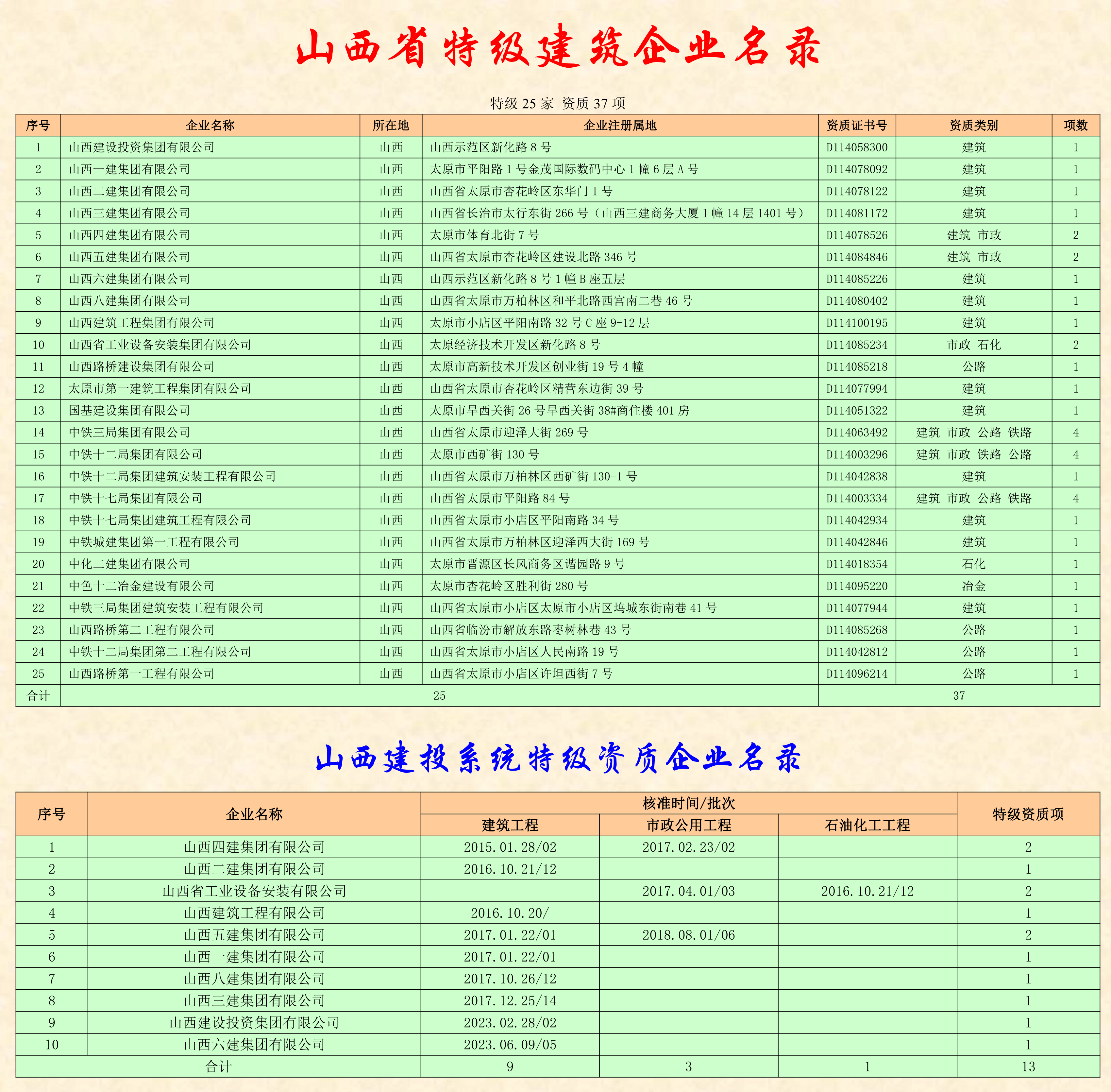 23 山西六建集团有限公司 山西 建筑工程施工总承包特级 6 升级 第五批
