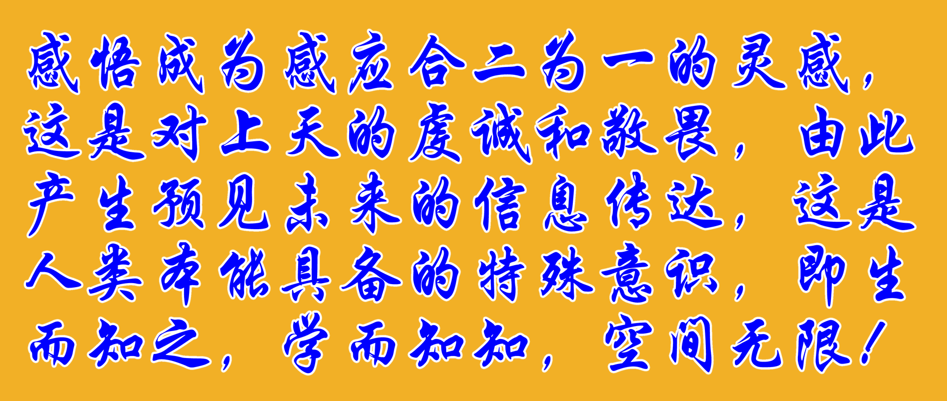 感悟成为感应合二为一的灵感,这是对上天的虔诚和敬畏,由此产生预见未来的信息传达,这是人类本能具备的特殊意识,即生而知之,学而知知,空间无限!