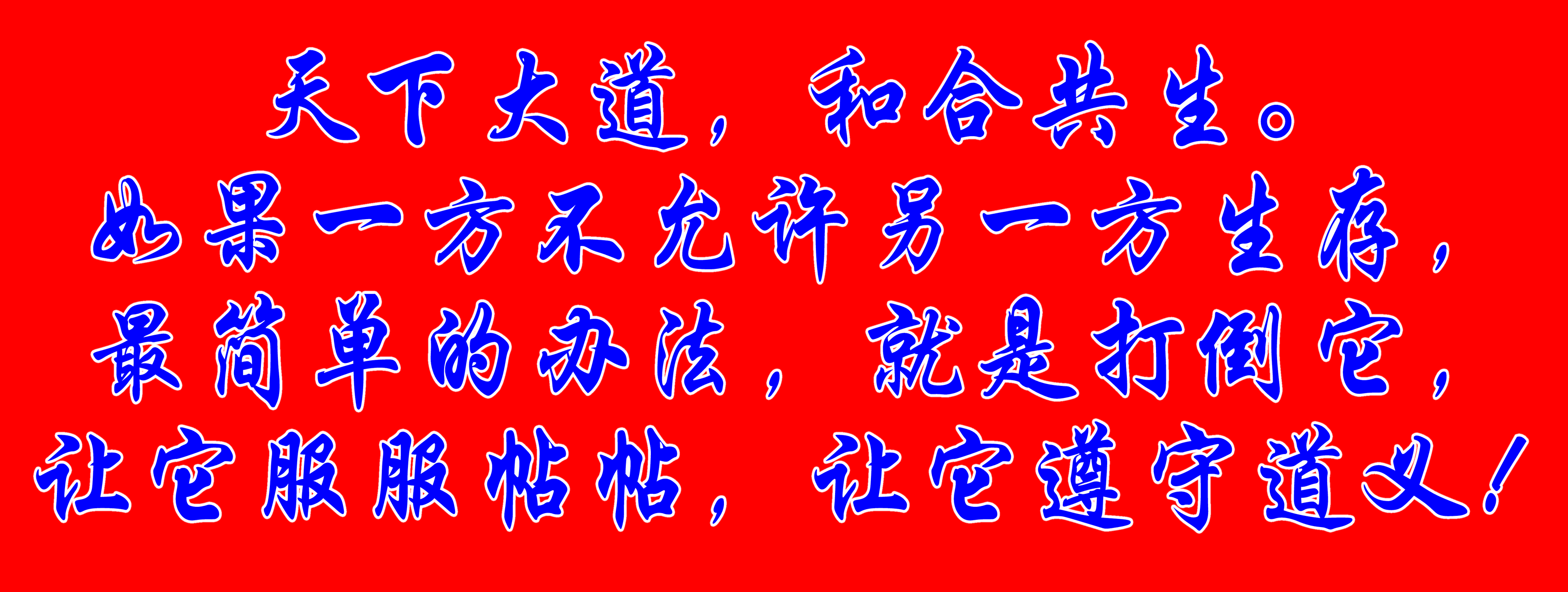 天下大道,和合共生。如果一方不允许另一方生存,最简单的办法,就是打倒它,让它服服帖帖,让它遵守道义!