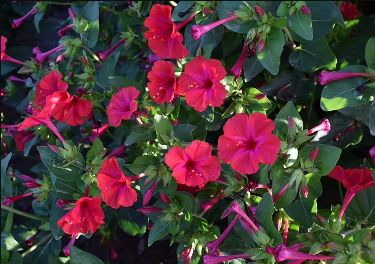 它的学名叫紫茉莉,过去太原地区老人们叫它送闺女花,后来人们也叫它地雷花,可能是缘于它的种子黑黝黝像个小地雷吧!