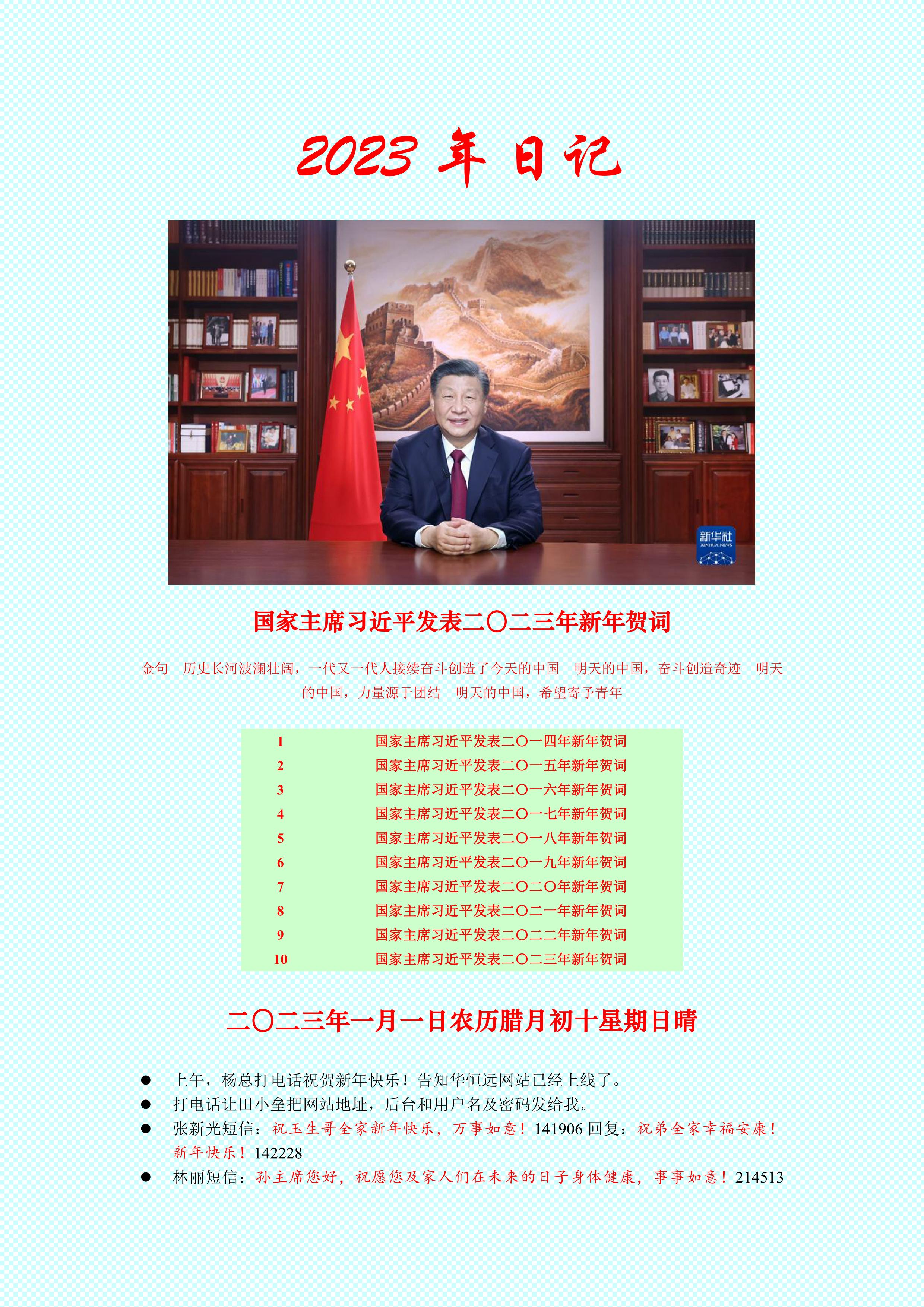 下面是2023年我的日记第一天和第二天,帖出来与百乐博bIbo的创业者分享,抛砖引玉,提升写日记的感悟、感应和灵感,让自己的灵性释放,理想奔放,信心倍增,如此才是行之有效的启发和教化!