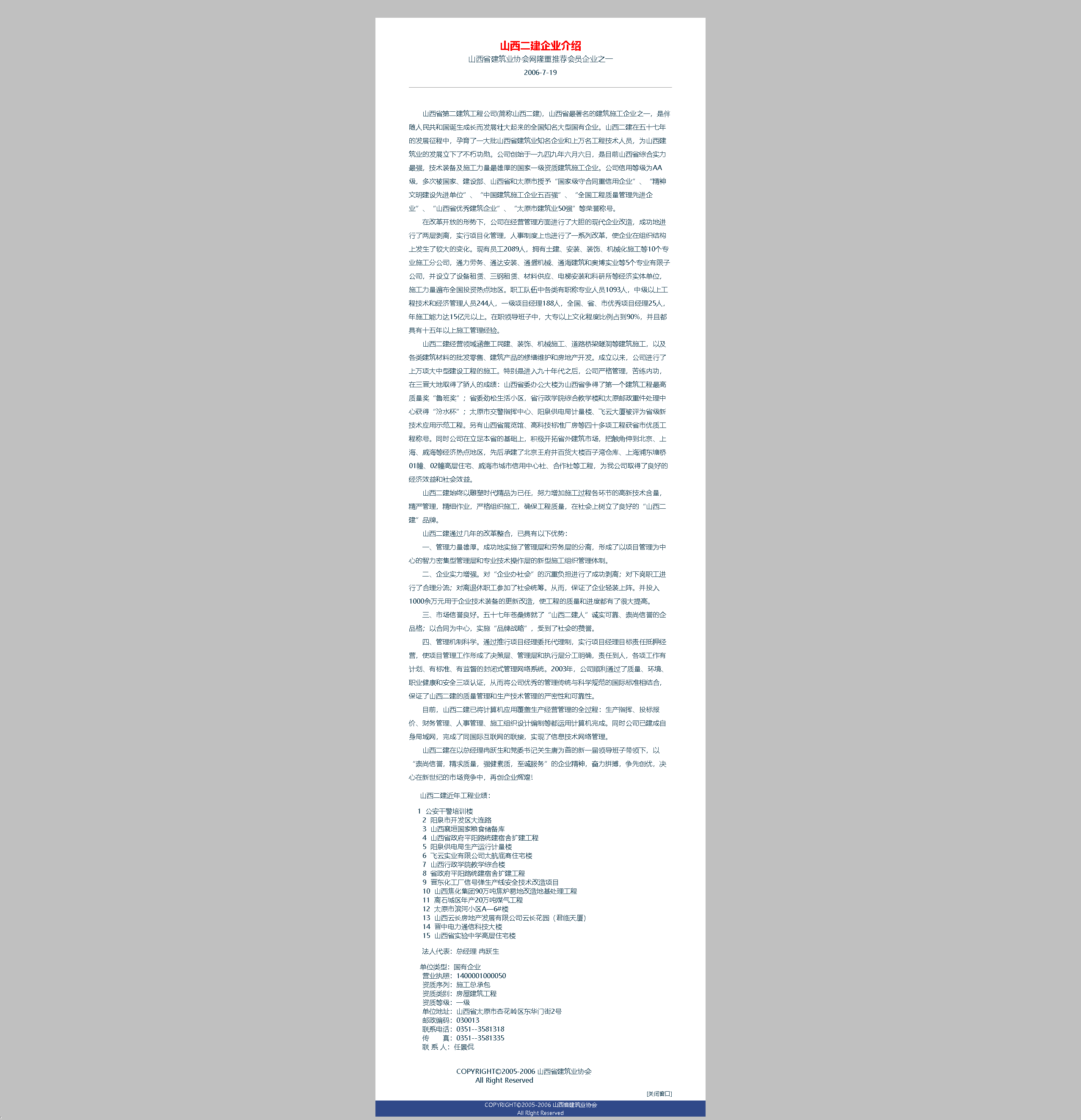 你看看我是如何推荐我的母企的,是协会作为宣传会员企业的第一家,尤其是我划了红框的“山西二建”,更是历史上第一次这么称呼,十年后2016年1月5日的山西二建集团有限公司揭牌仪式,正是那时候就开始谋划的!