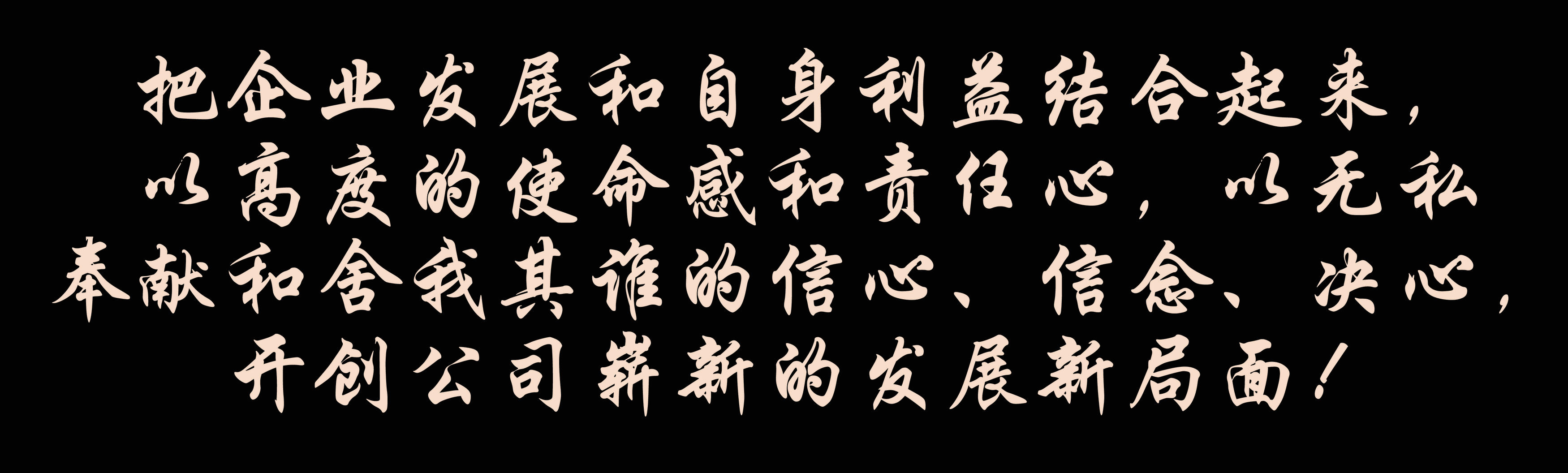尤其是元、郝、路三位领导,你们的使命光荣,责任重大,公司能不能发展,能不能前进,全在你们肩上!不要只考虑个人利益和个人得失,不要把工作当成自己的权利范围,要调动大家的积极性,主动性和创造性,学会正确组织和安排分管部门的工作,千斤重担大家挑,分工合作,相互配合,相互促进!一个人的能力和精力是有限的,大家的精神和力量就是无限的,任何困难也难不倒压不垮!