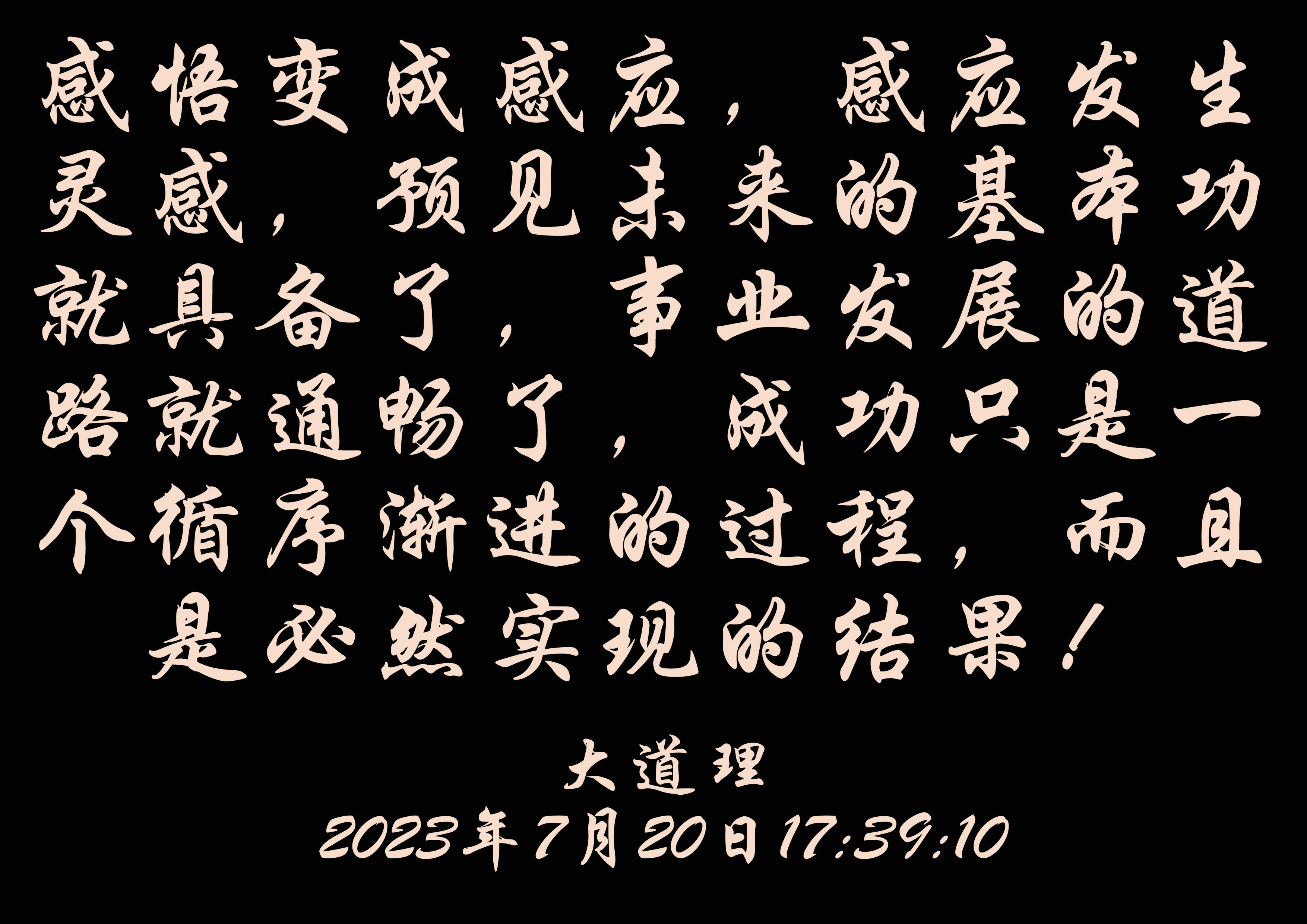 这就是中华文明和中华文化在新时代改变中国的第二个结合,国家如此,社会更是如此。懂得了这个道理,感悟变成感应,感应发生灵感,预见未来的基本功就具备了,事业发展的道路就通畅了,成功只是一个循序渐进的过程,而且是必然实现的结果!