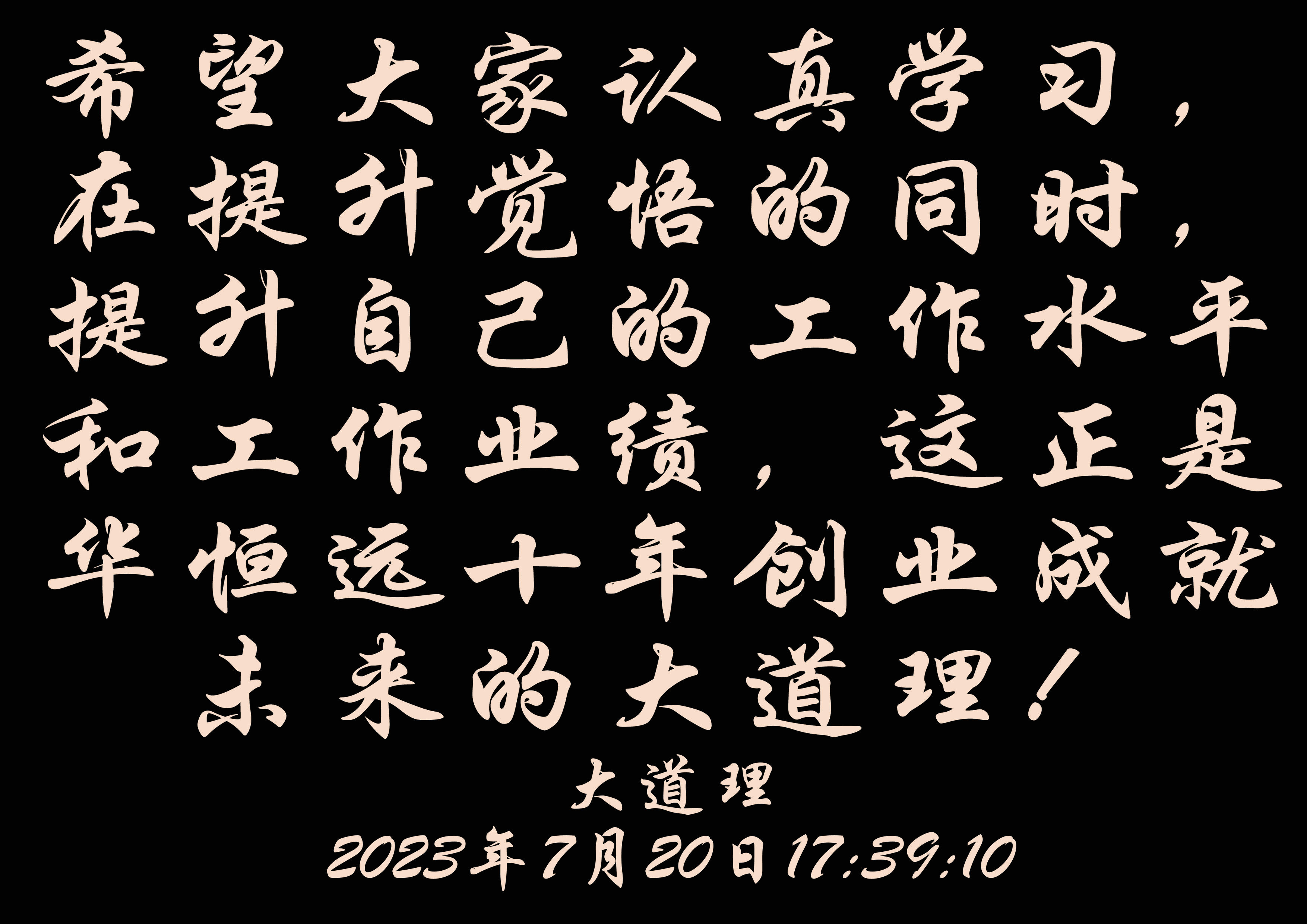 希望大家认真学习,在提升觉悟的同时,提升自己的工作水平和工作业绩,这正是百乐博bIbo十年创业成就未来的大道理!
