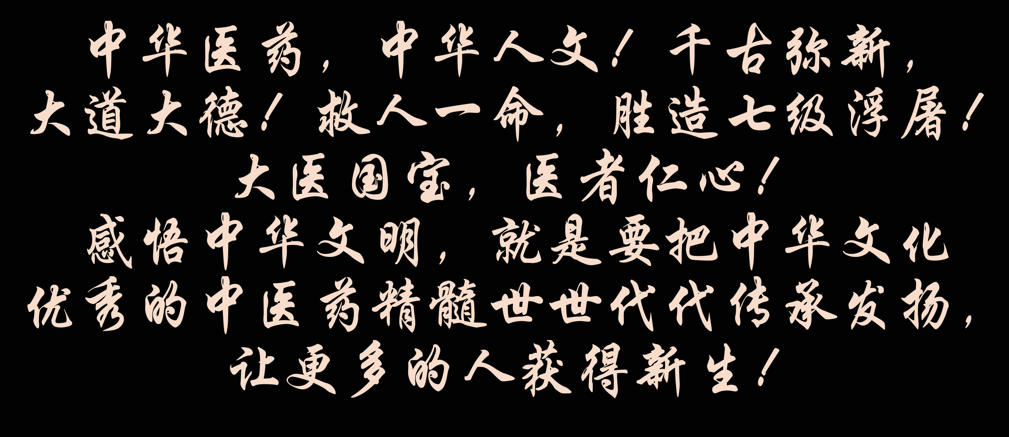 中华医药,中华人文!千古弥新,大道大德!救人一命,胜造七级浮屠!大医国宝,医者仁心!