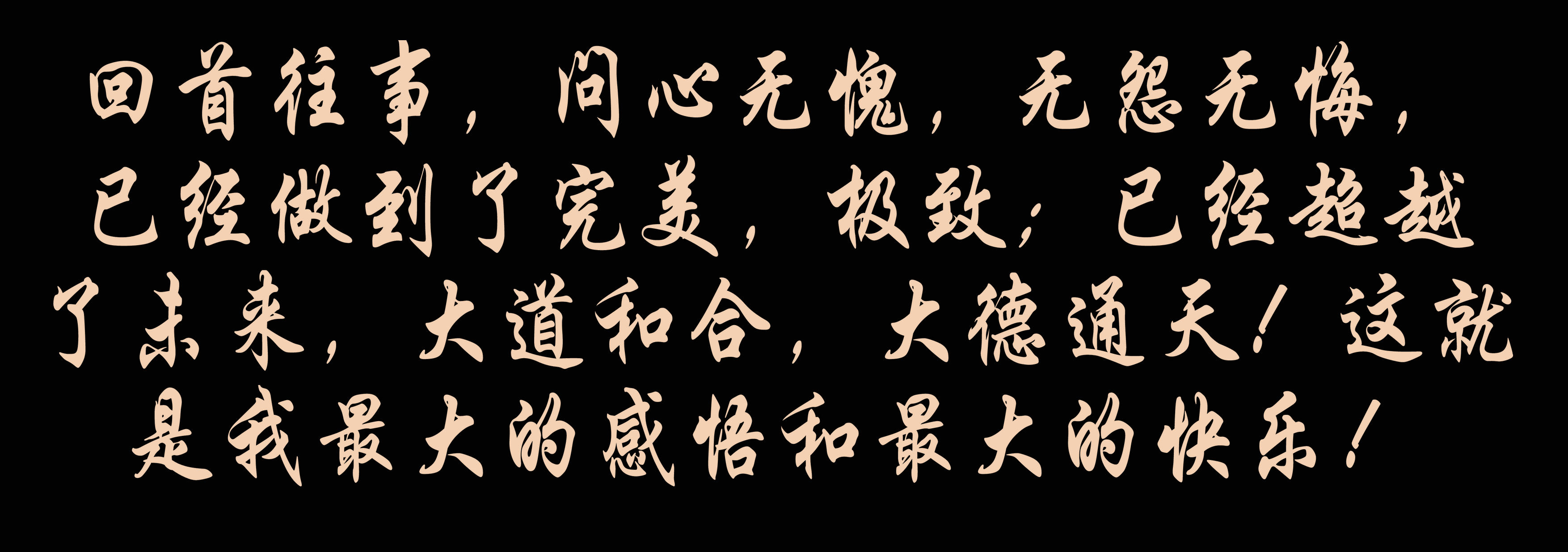 回首往事,问心无愧,无怨无悔,已经做到了完美,极致;已经超越了未来,大道和合,大德通天!这就是我最大的感悟和最大的快乐——成就我成就的企业和未来!