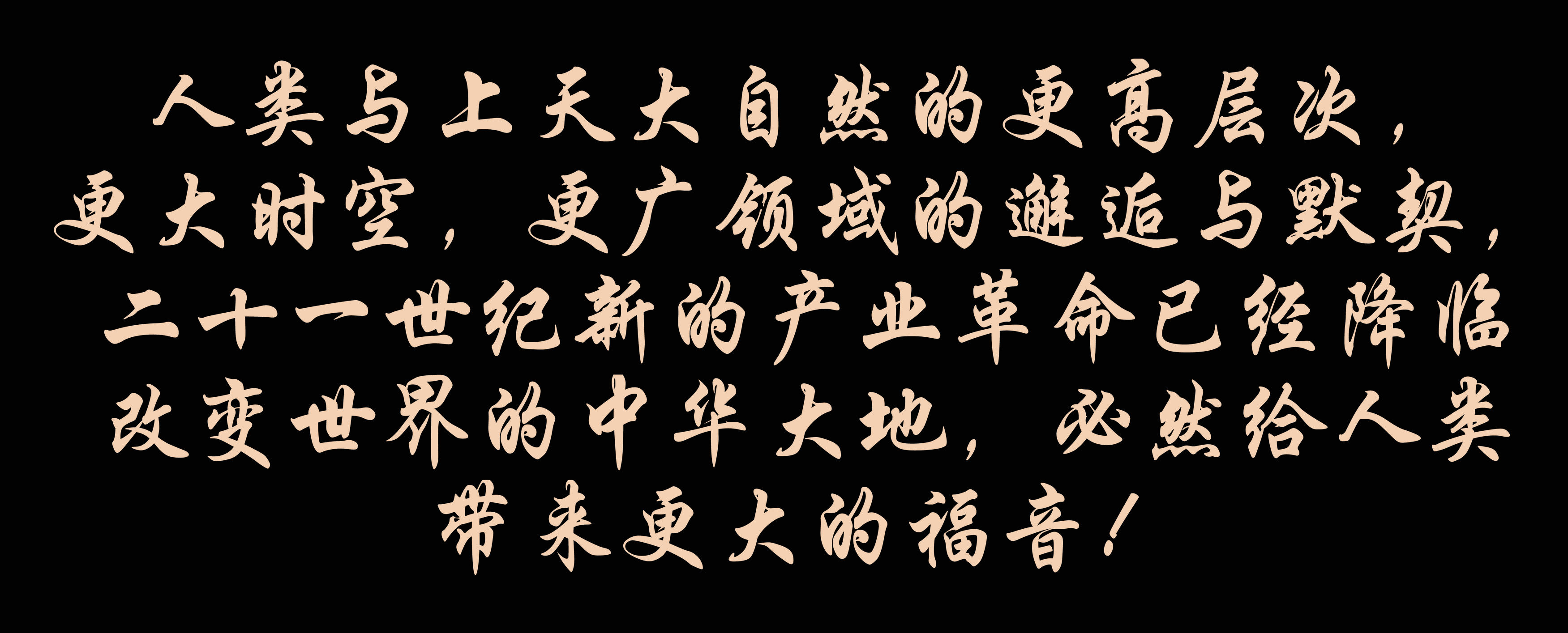 所有这一切,都是人类与上天大自然的更高层次,更大时空,更广领域的邂逅与默契,二十一世纪新的产业革命已经降临改变世界的中华大地,必然给人类带来更大的福音!