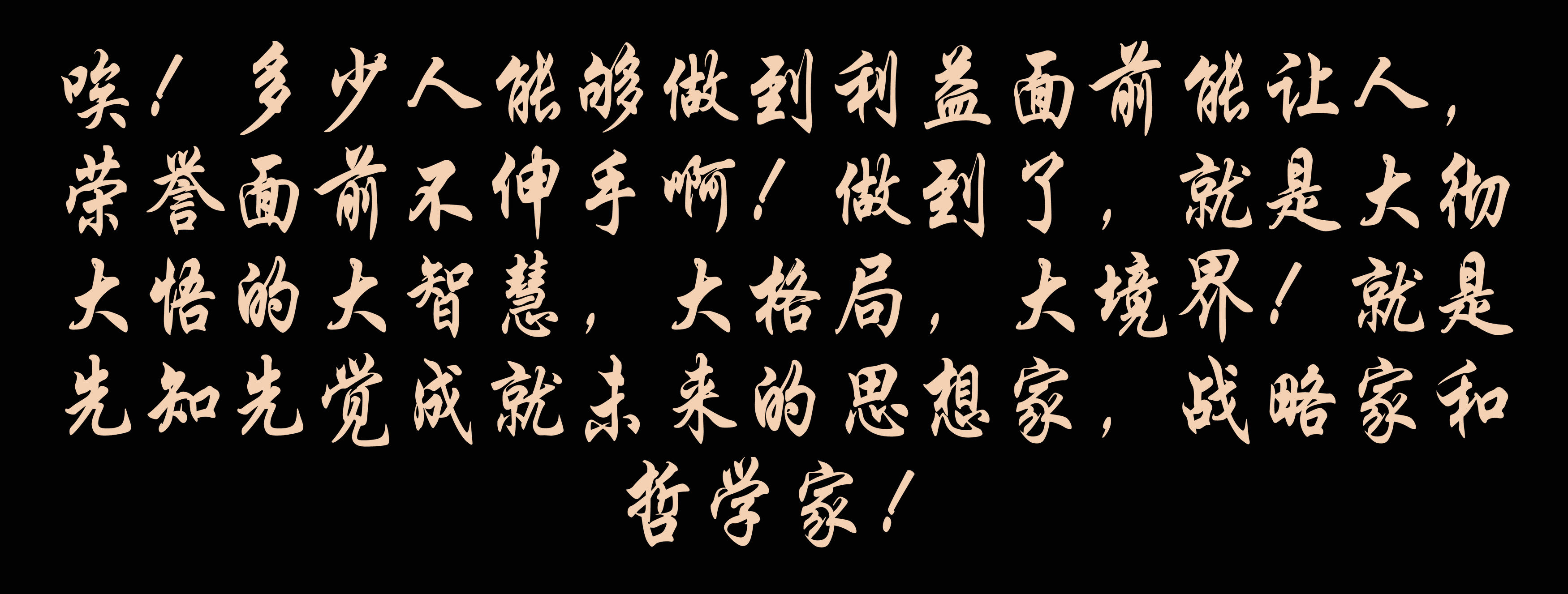 唉!多少人能够做到利益面前能让人,荣誉面前不伸手啊!做到了,就是大彻大悟的大智慧,大格局,大境界!就是先知先觉成就未来的思想家,战略家和哲学家!