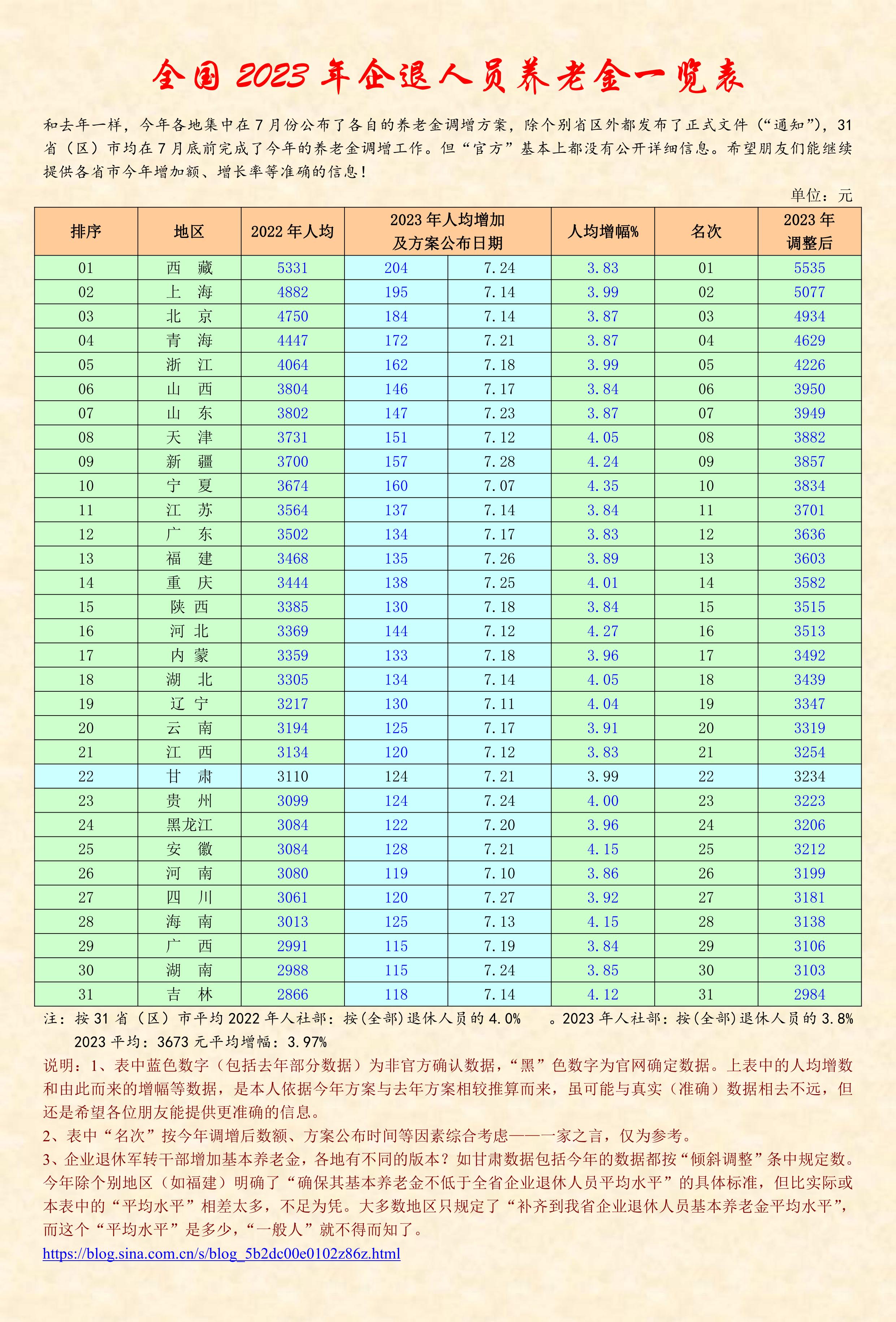 关注他的博客,已经好多年,他每年不厌其烦做一件事情,让我感动,那就是为全国企业退休的老人们服务,提供当年养老金信息的同时,编辑了比较和汇总,让大家一看便知,心中有数,各得其所!