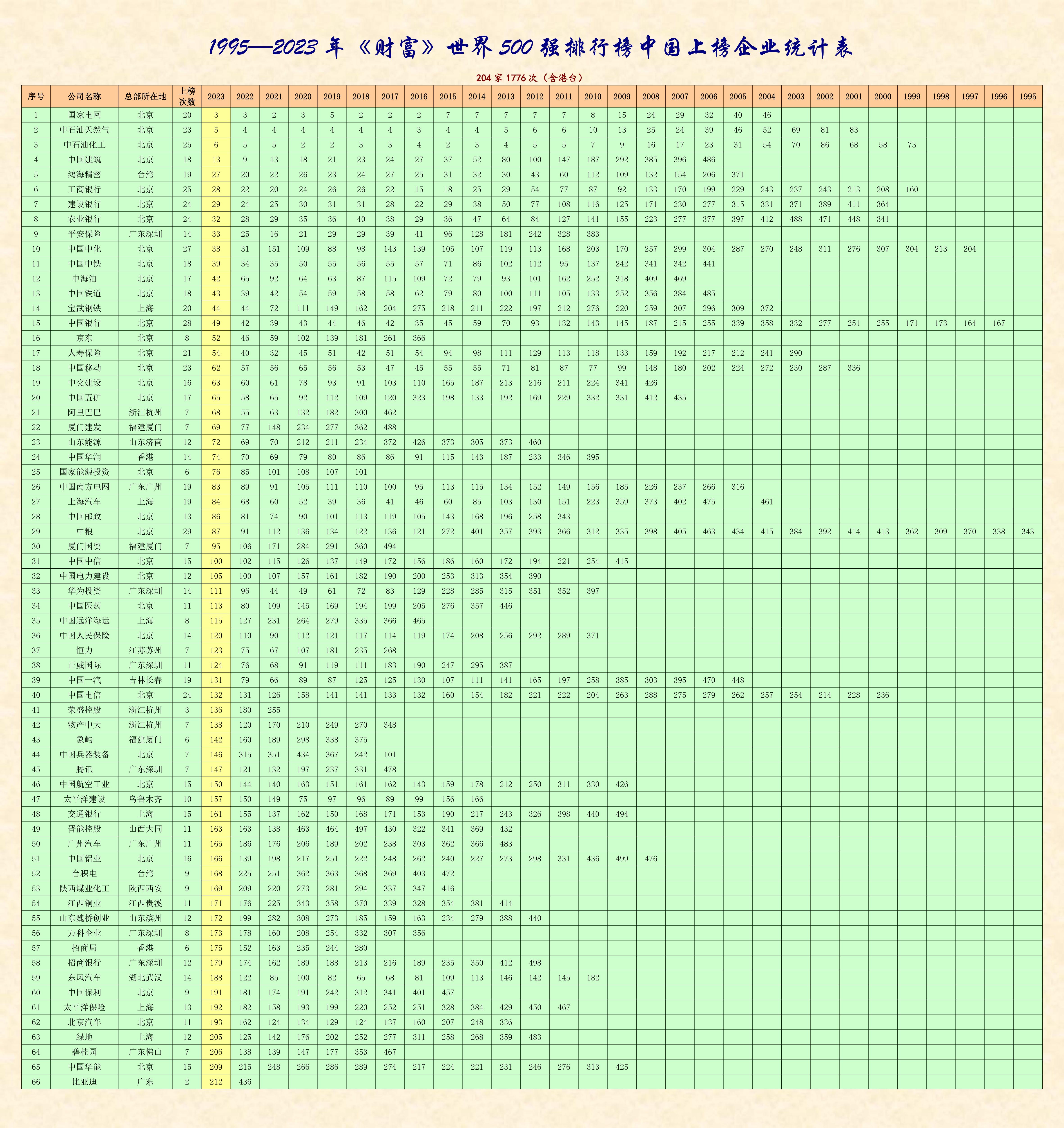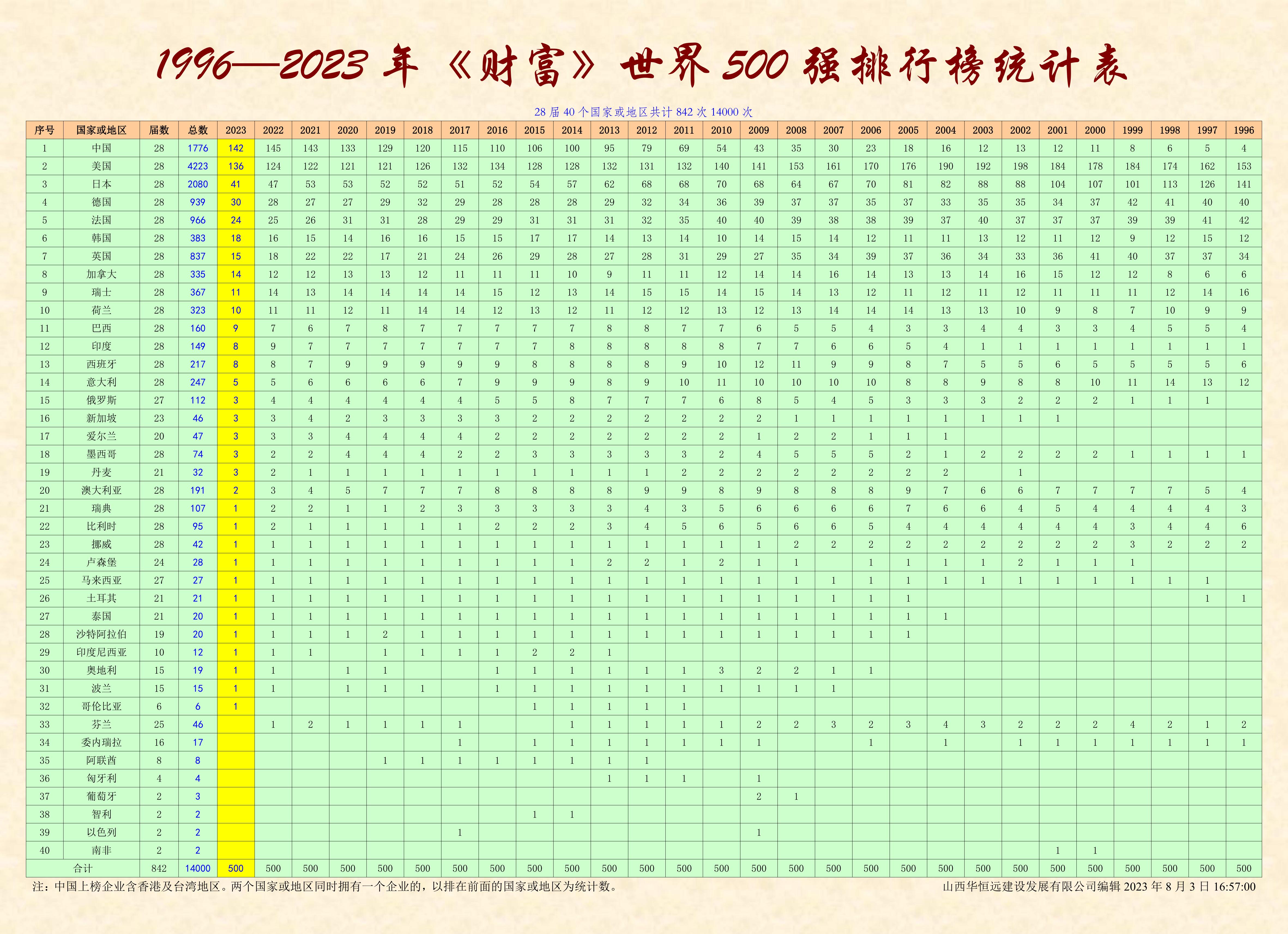 《财富》世界500强杂志社,从1995年开始在中国登陆,已经连续举办了29期中文版的世界500强排名榜,我收集到的完整资料,仅缺第一期1995年的全榜单,所以,目前只能编辑二十八期。即1996-2023年《财富》世界500强和中国上榜企业的名单,待日后有机会的话再补齐。