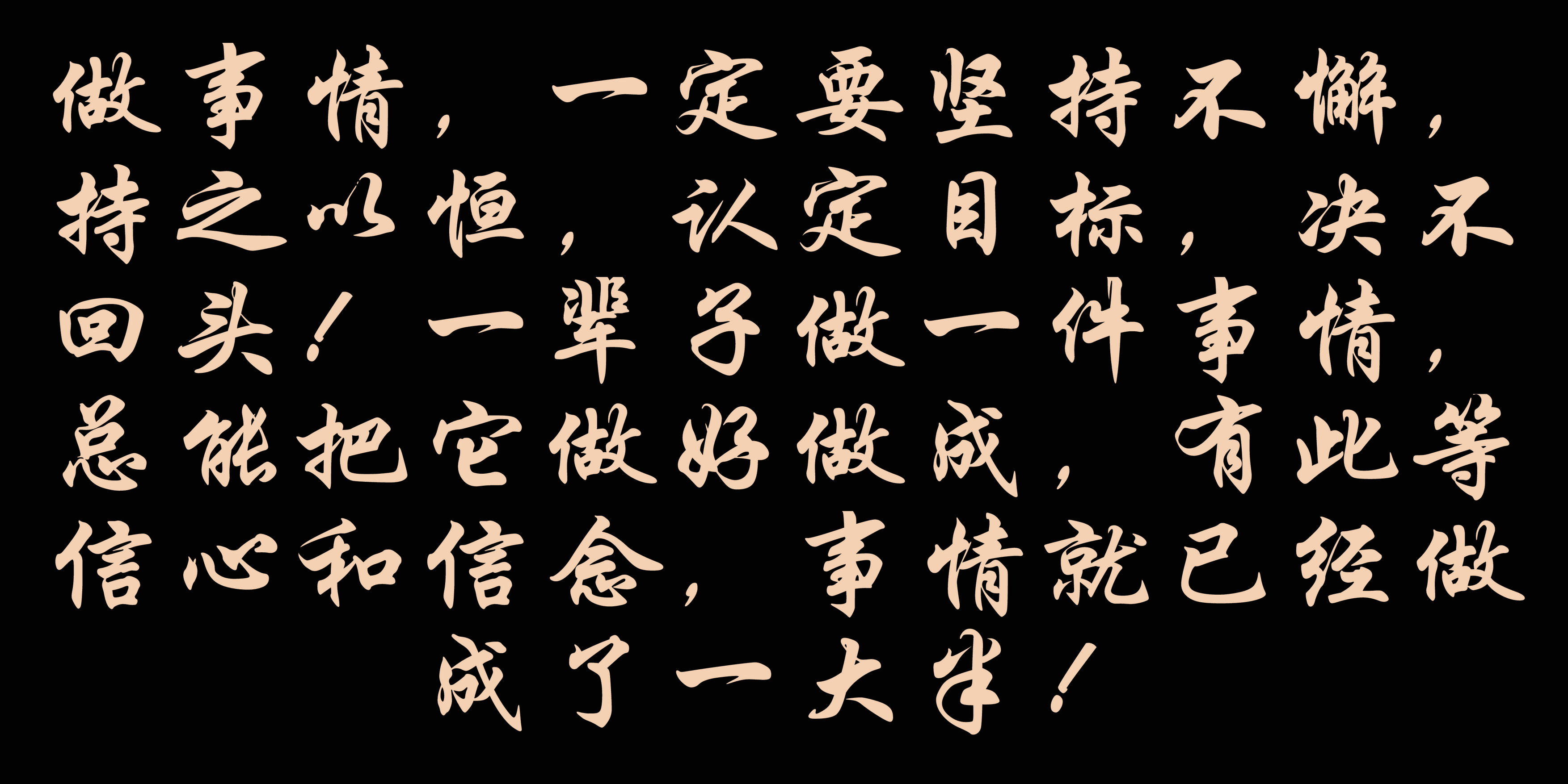做事情,一定要坚持不懈,持之以恒,认定目标,决不回头!一辈子做一件事情,总能把它做好做成,有此等信心和信念,事情就已经做成了一大半!