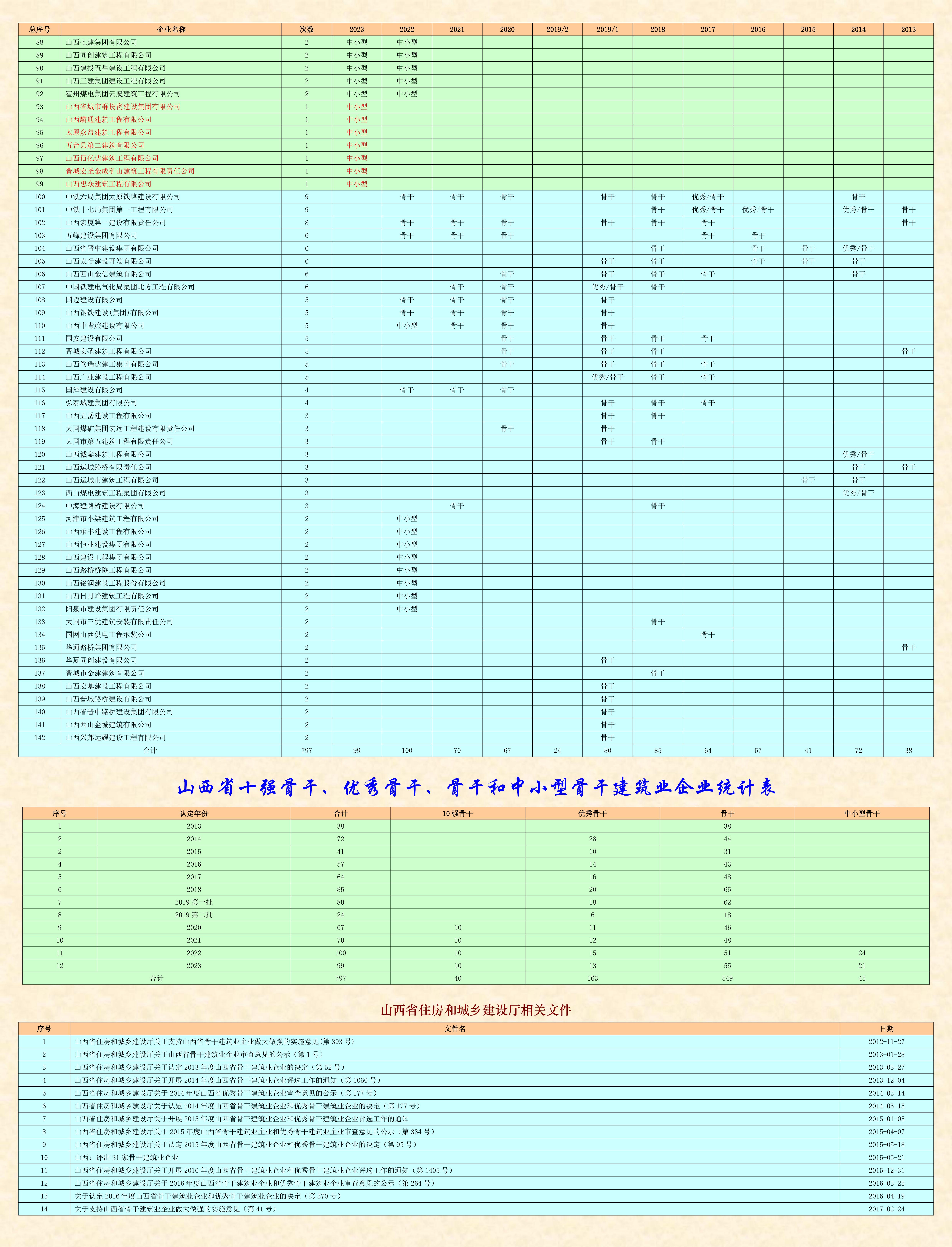 今天,省住建厅公布了2023年度山西省骨干建筑业企业名单。这是从2013年开始连续十一年第12次对全省建筑业企业的又一次检验和认定!