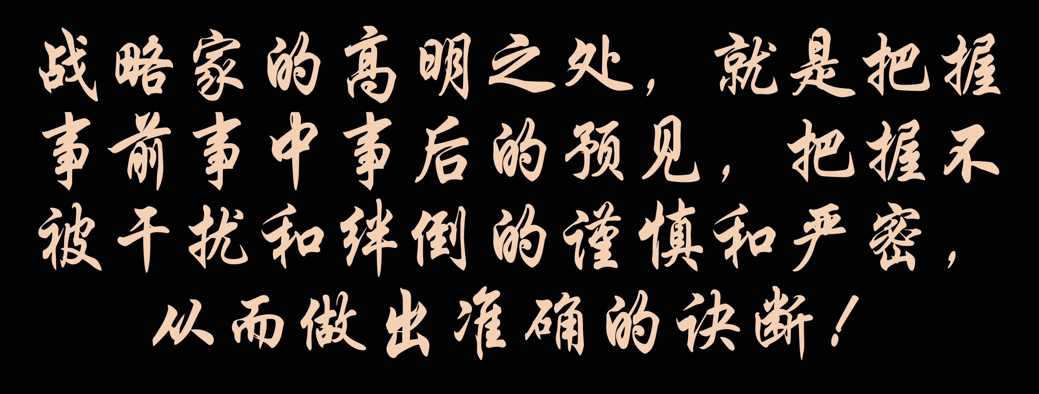 战略家的高明之处,就是把握事前事中事后的预见,把握不被干扰和绊倒的谨慎和严密,从而做出准确的诀断!