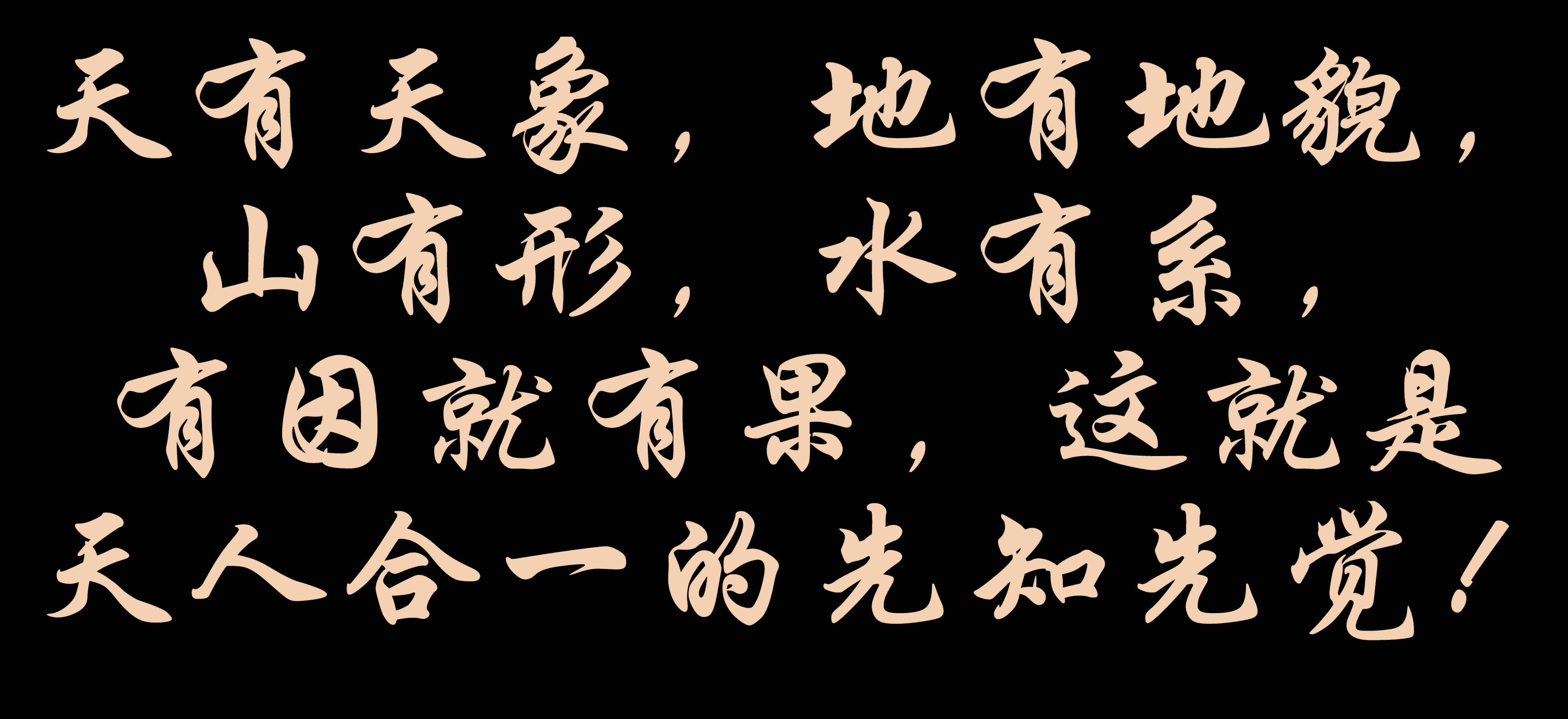 天有天象,地有地貌,山有形,水有系,有因就有果,这就是天人合一的先知先觉!