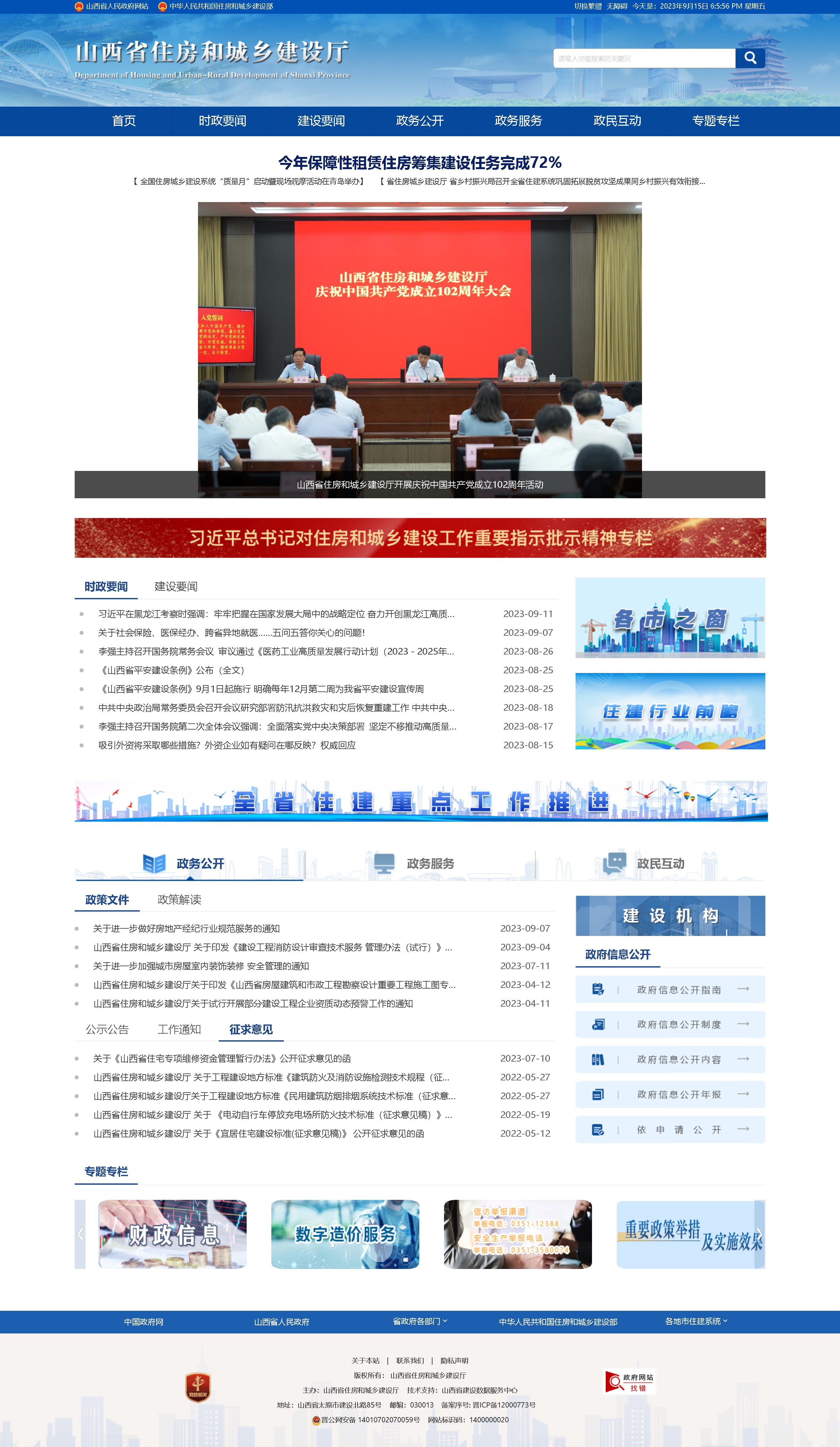 为进一步提升山西省住房和城乡建设厅政务公开工作水平和公众服务能力,我厅网站进行了升级改版,并于2023年9月12日上线试运行。现阶段,新版网站界面、栏目、信息等正在逐步完善中,试运行期间存在的问题和不足我们会尽快予以解决,由此带来的不便敬请谅解。真诚欢迎社会各界提出宝贵意见和建议,我们将持续优化网站功能,为社会公众提供更加优质的服务。
