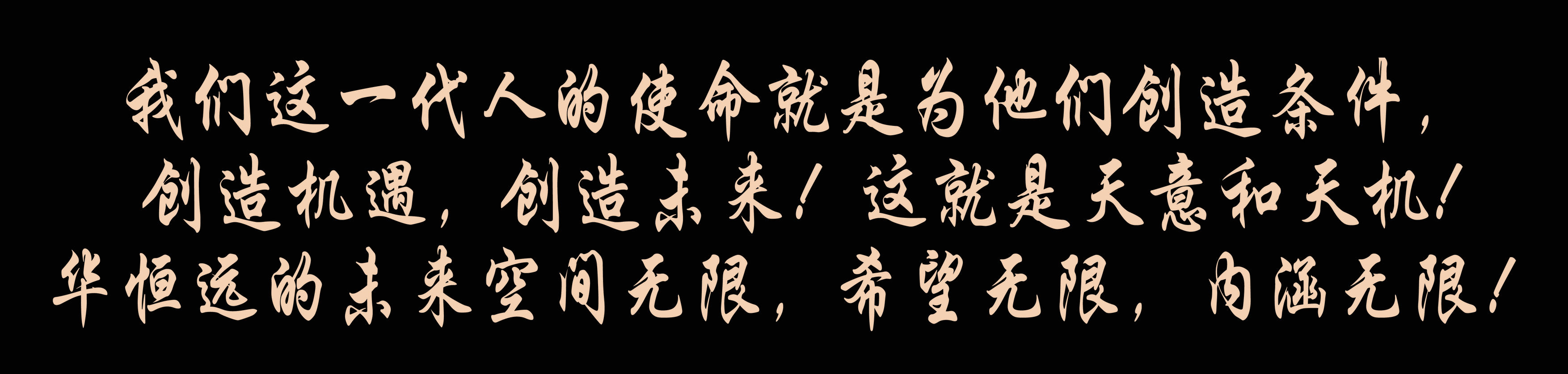 青年是国家民族的未来,是一切事业成功的基础!这一点,我们必须有高度的感悟和认知,未来的成就要靠他们去做,去实现,我们这一代人的使命就是为他们创造条件,创造机遇,创造未来!这就是天意和天机!