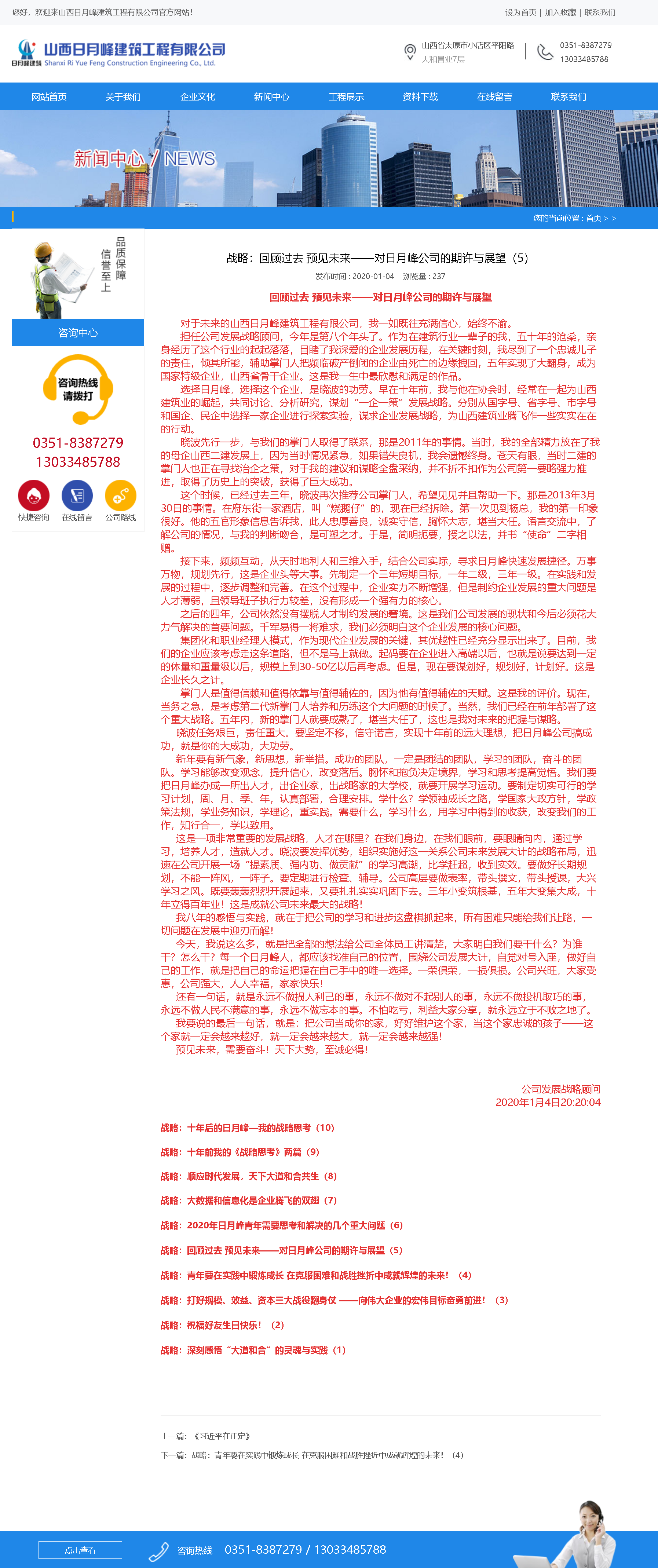 担任公司发展战略顾问,今年是第八个年头了。作为在建筑行业一辈子的我,五十年的沧桑,亲身经历了这个行业的起起落落,目睹了我深爱的企业发展历程,在关键时刻,我尽到了一个忠诚儿子的责任,倾其所能,辅助掌门人把频临破产倒闭的企业由死亡的边缘拽回,五年实现了大翻身,成为国家特级企业,山西省骨干企业。这是我一生中最欣慰和满足的作品。