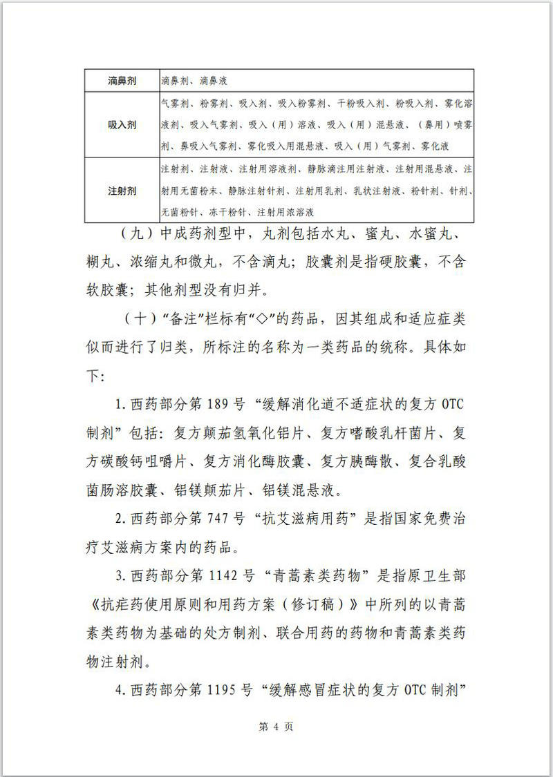 3.西药部分第1142号“青蒿素类药物”是指原卫生部《抗疟药使用原则和用药方案(修订稿)》中所列的以青蒿素类药物为基础的处方制剂、联合用药的药物和青蒿素类药物注射剂。