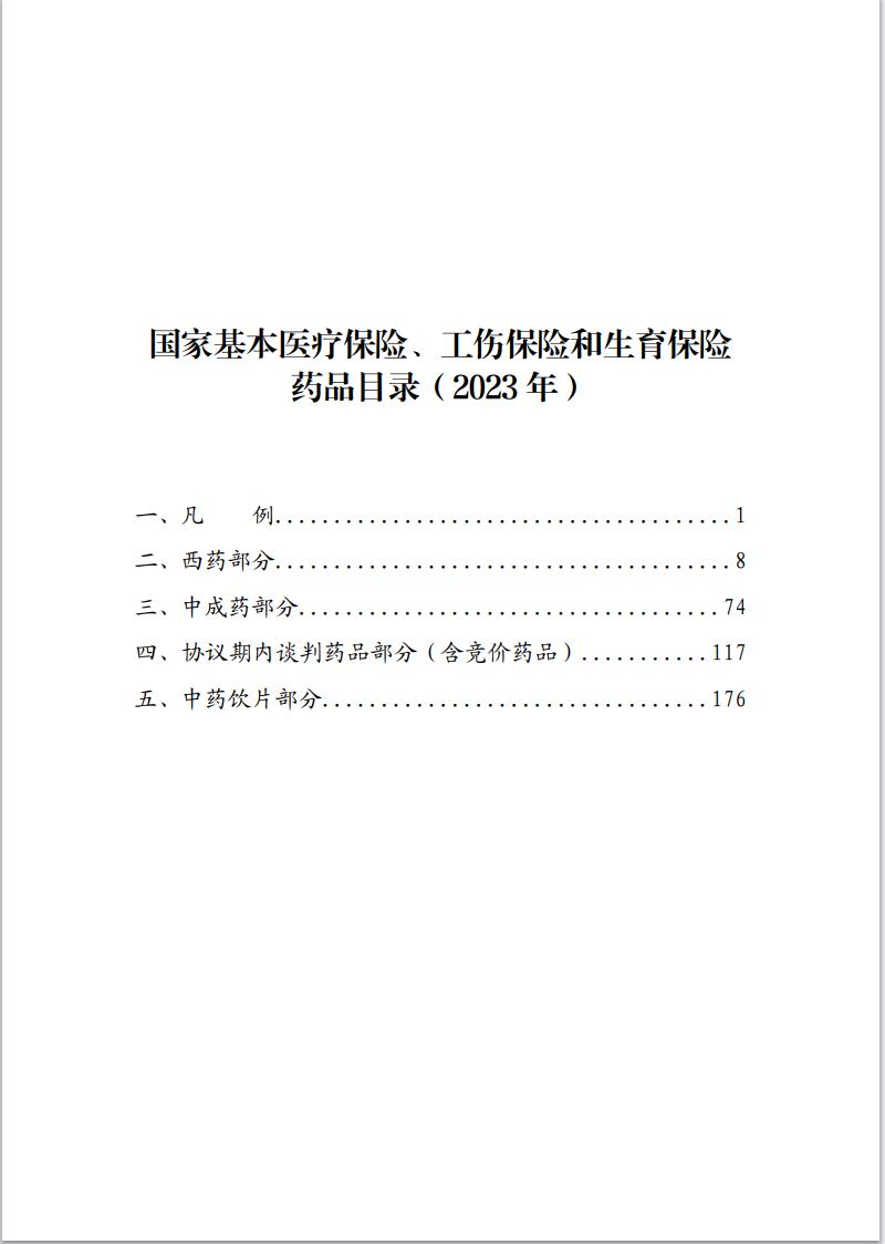(一)《药品目录》西药部分、中成药部分、协议期内谈判药品(含竞价药品,下同)部分和中药饮片部分所列药品为基本医疗保险、工伤保险和生育保险基金准予支付费用的药品。其中西药部分1334个,中成药部分1323个(含民族药93个),协议期内谈判药品部分431个(含西药364个、中成药67个),共计3088个。