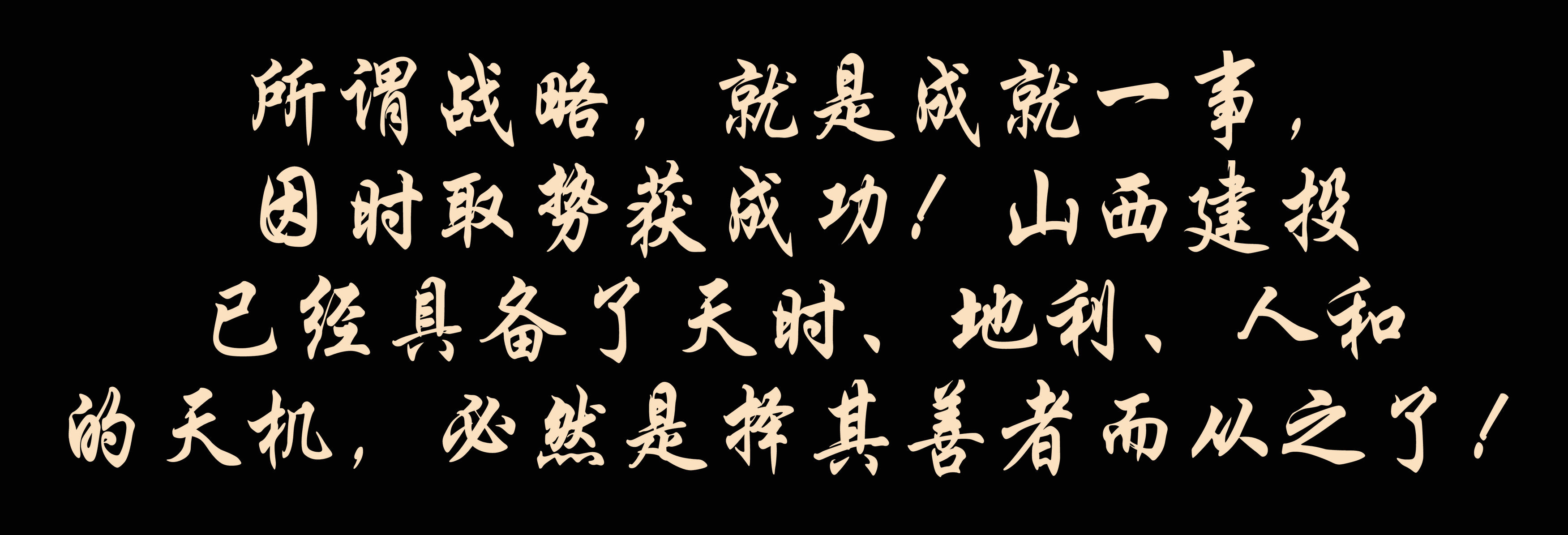 所谓战略,就是成就一事,因时取势获成功!山西建投已经具备了天时、地利、人和的天机,必然是择其善者而从之了!