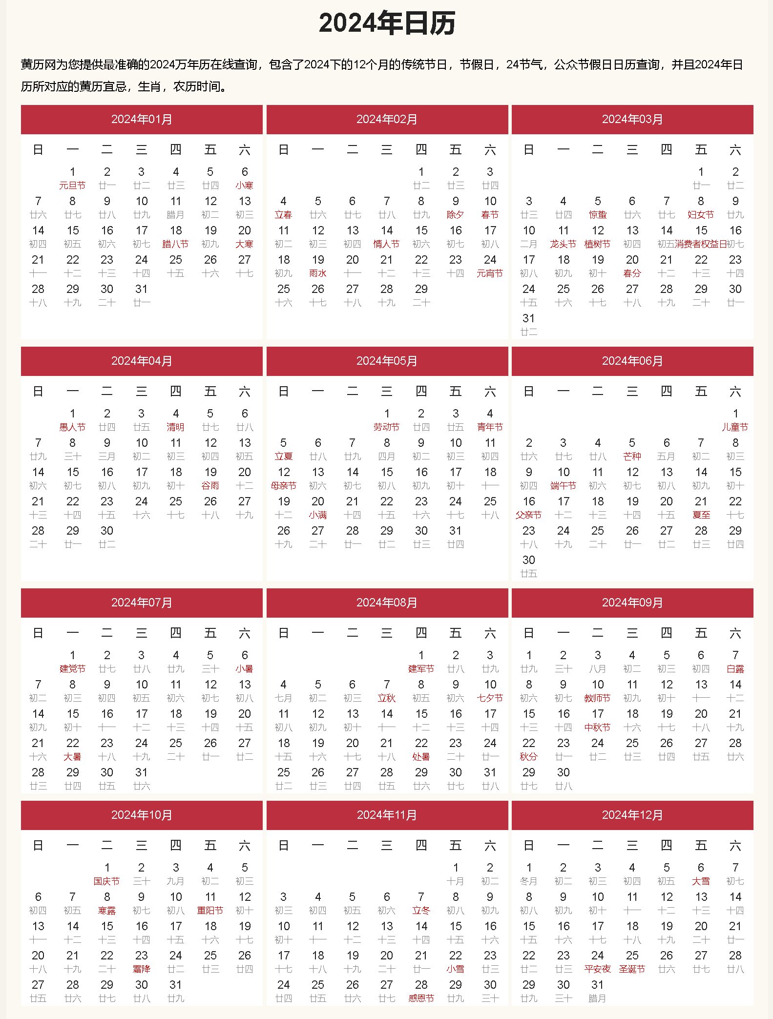 2024年日历