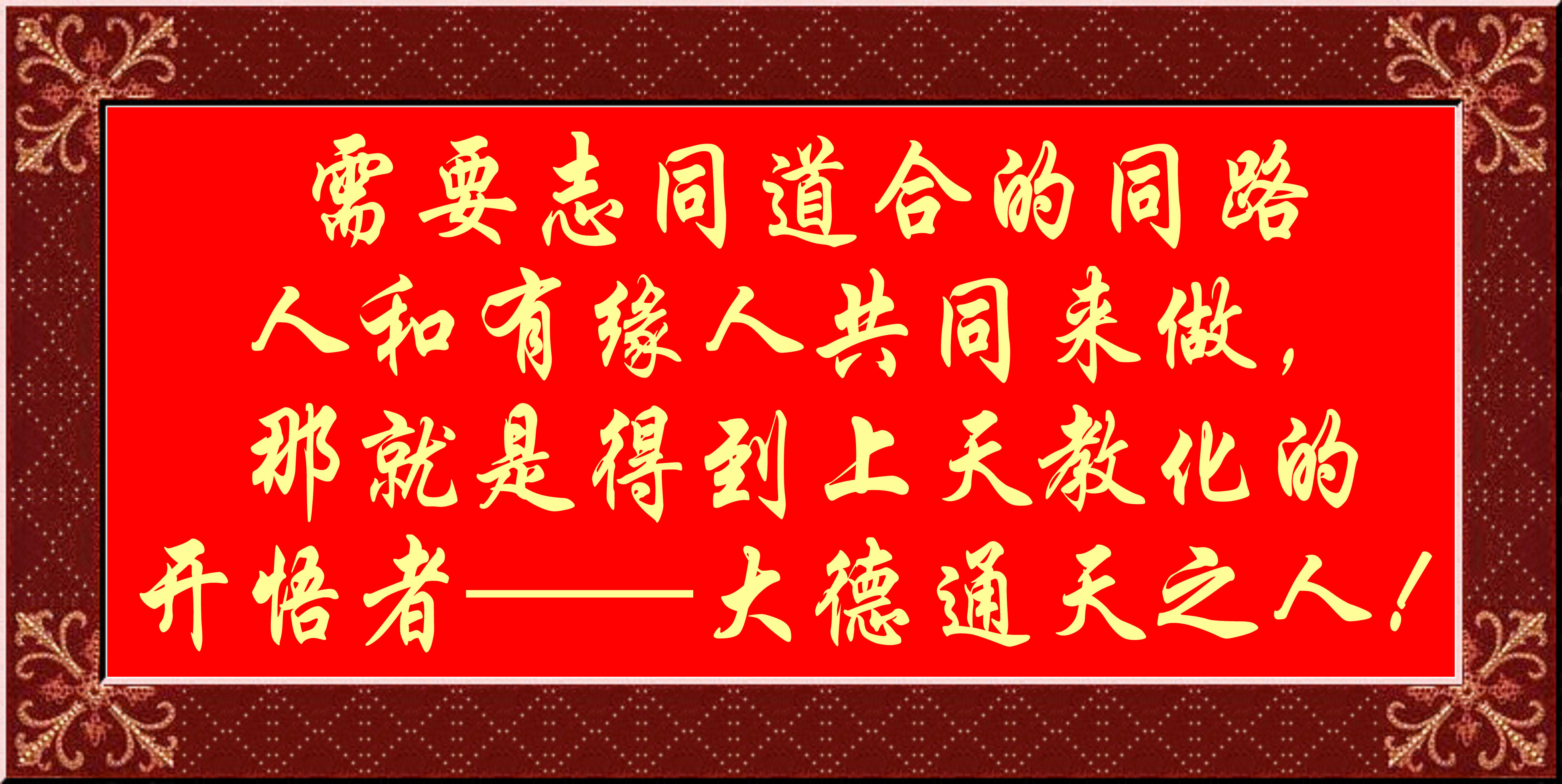 这件事,需要志同道合的同路人和有缘人共同来做,那就是得到上天教化的开悟者——大德通天之人!