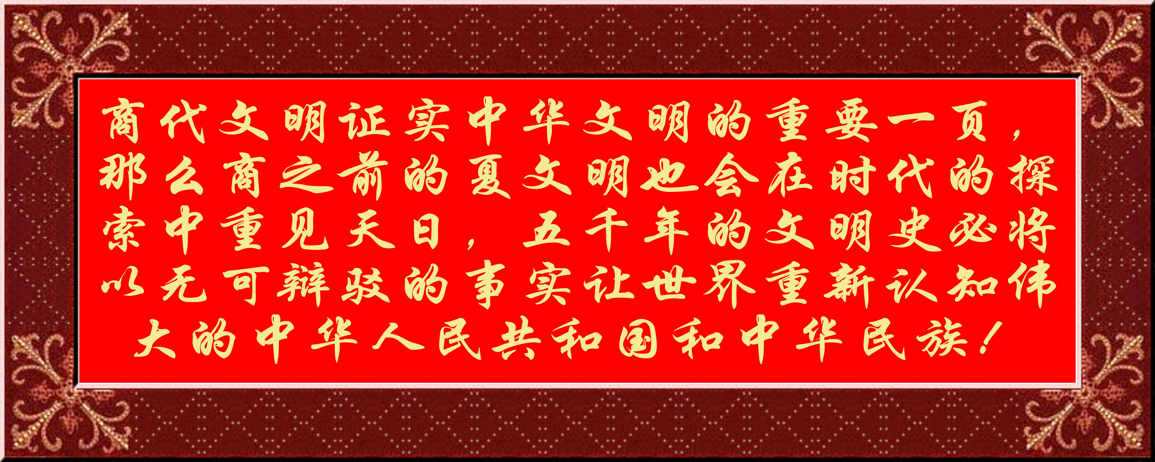 商代文明证实中华文明的重要一页,那么商之前的夏文明,也会在时代的探索中重见天日!五千年的文明史,必将以无可辩驳的事实,让世界重新认知伟大的中华民族和伟大的中华人民共和国!