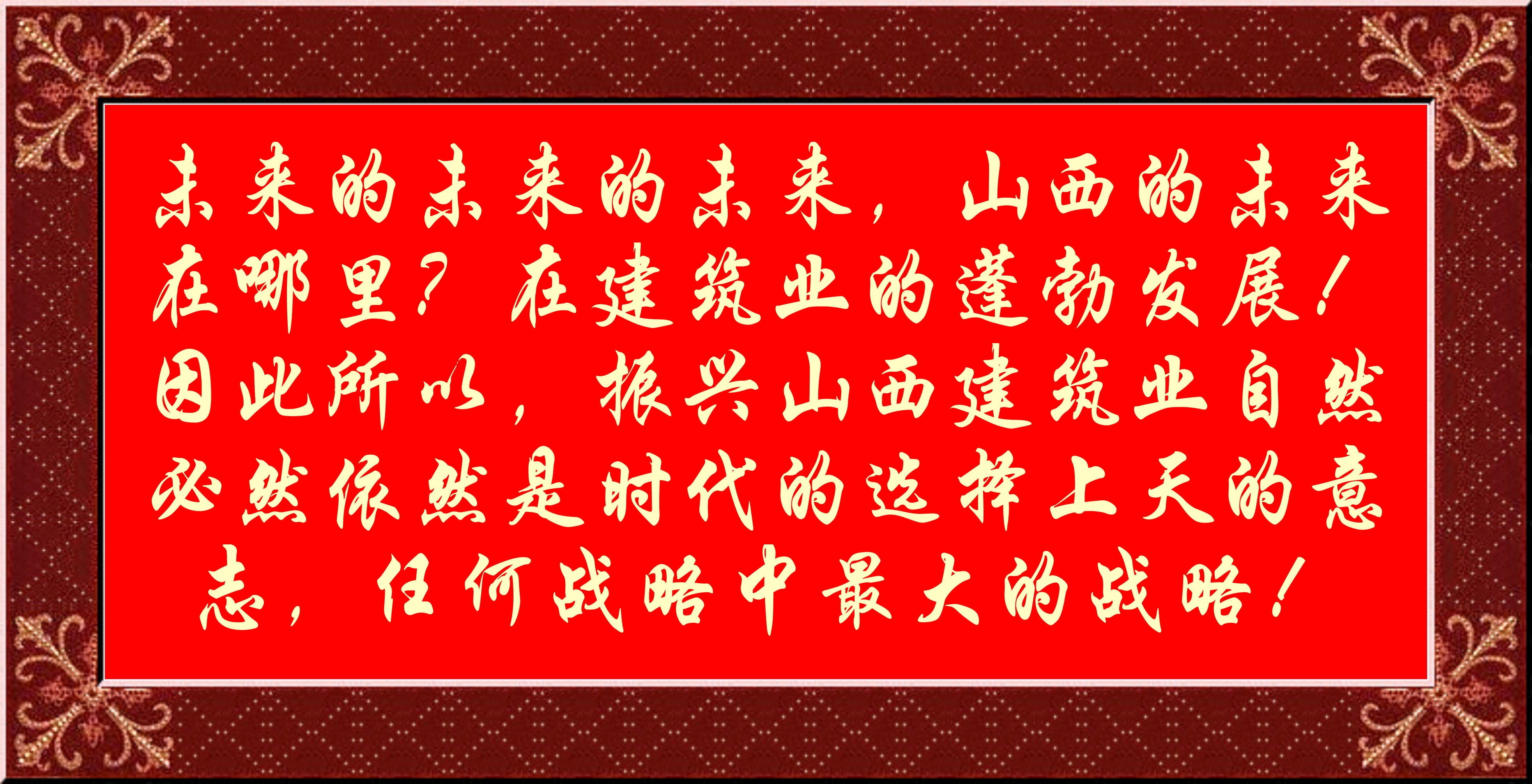 未来的未来的未来,山西的未来在哪里?在建筑业的蓬勃发展!因此所以,振兴山西建筑业自然必然依然是时代的选择上天的意志,任何战略中最大的战略!