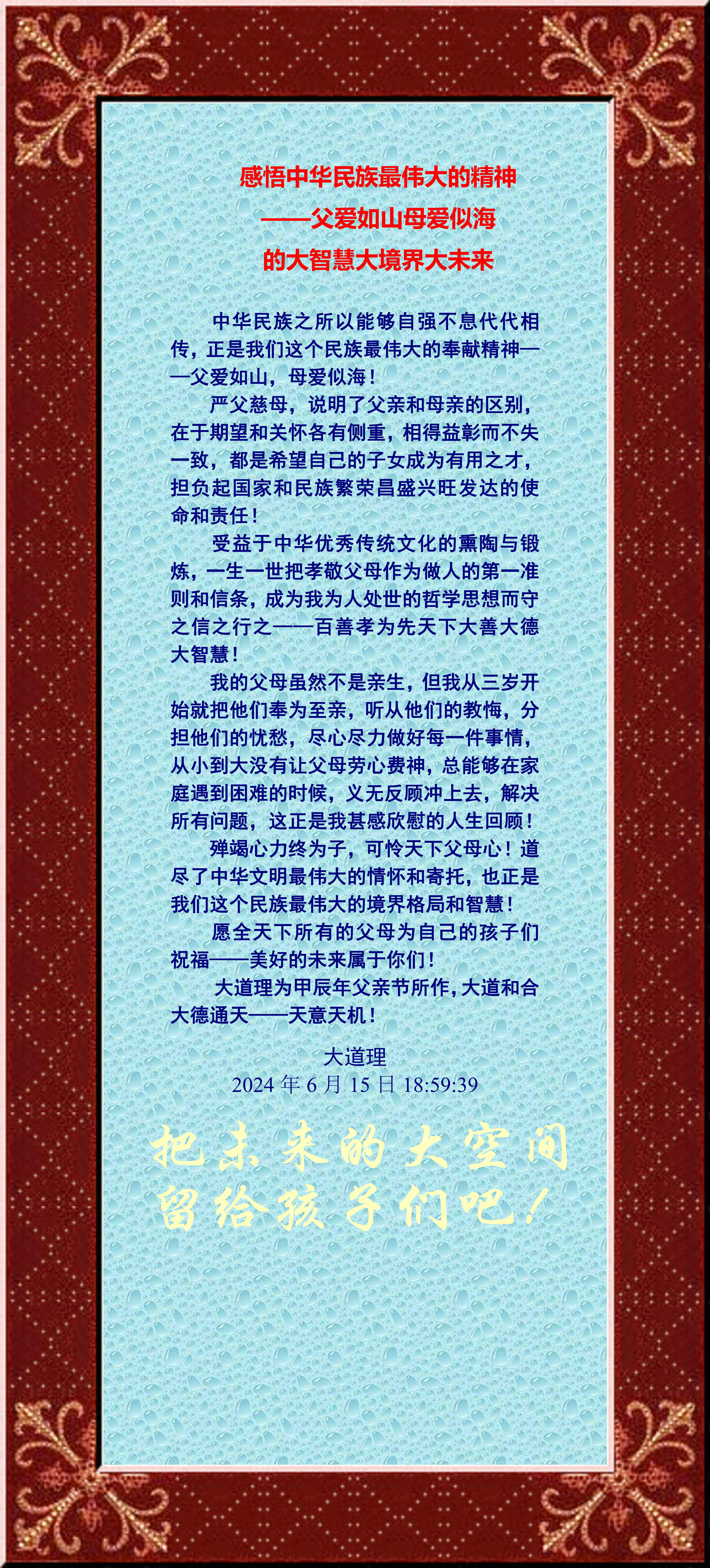 大道理为甲辰年父亲节所作,大道和合大德通天——天意天机!