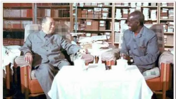 1974年2月22日,毛泽东在会见赞比亚总统卡翁达