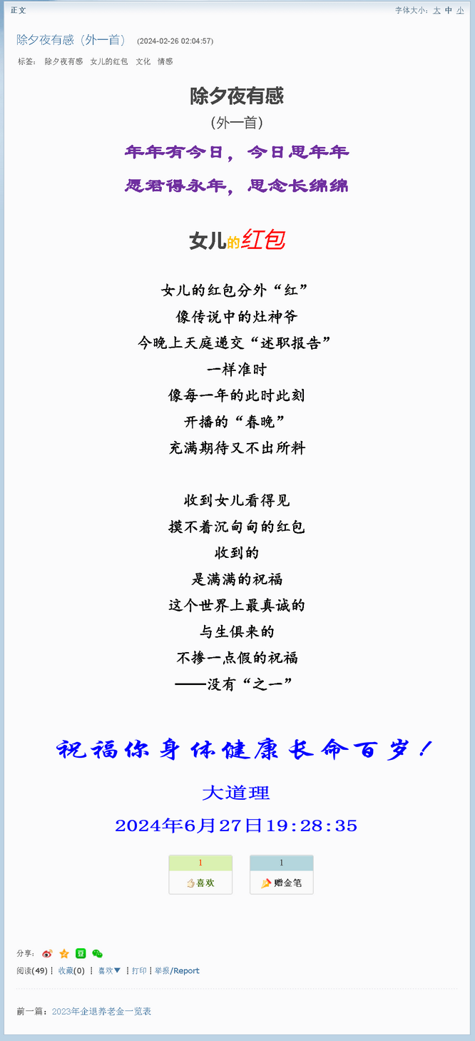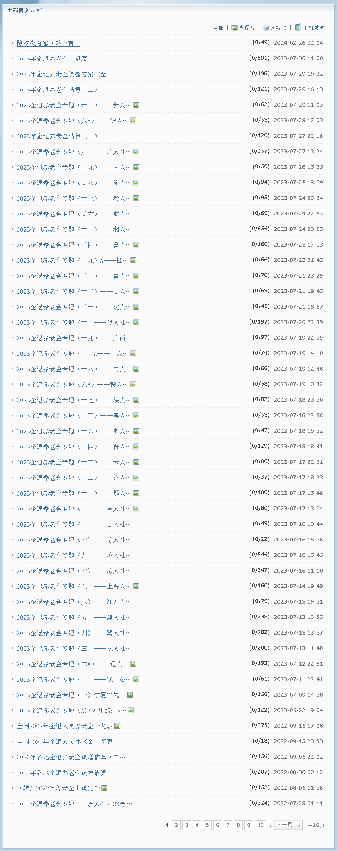 今年国家发布二十连涨政策,我看他的博客没有更新。山东省第一家公布2024年退休人员养老金上调,水曰北流泉博客依然如故。